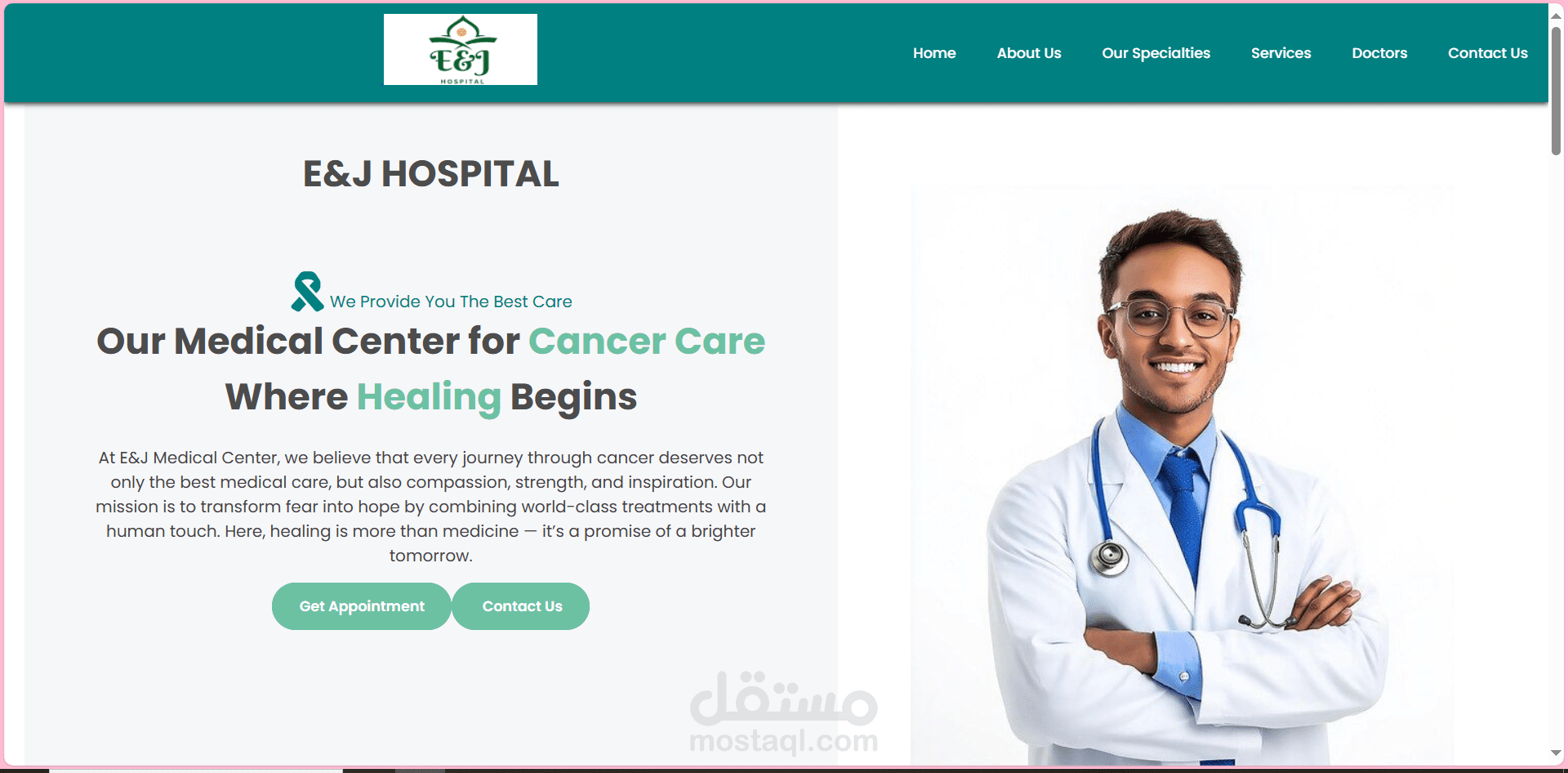 تصميم صفحة هبوط (Landing Page) احترافية لمركز علاج السرطان..باستخدام HTML, CSS, Java Script