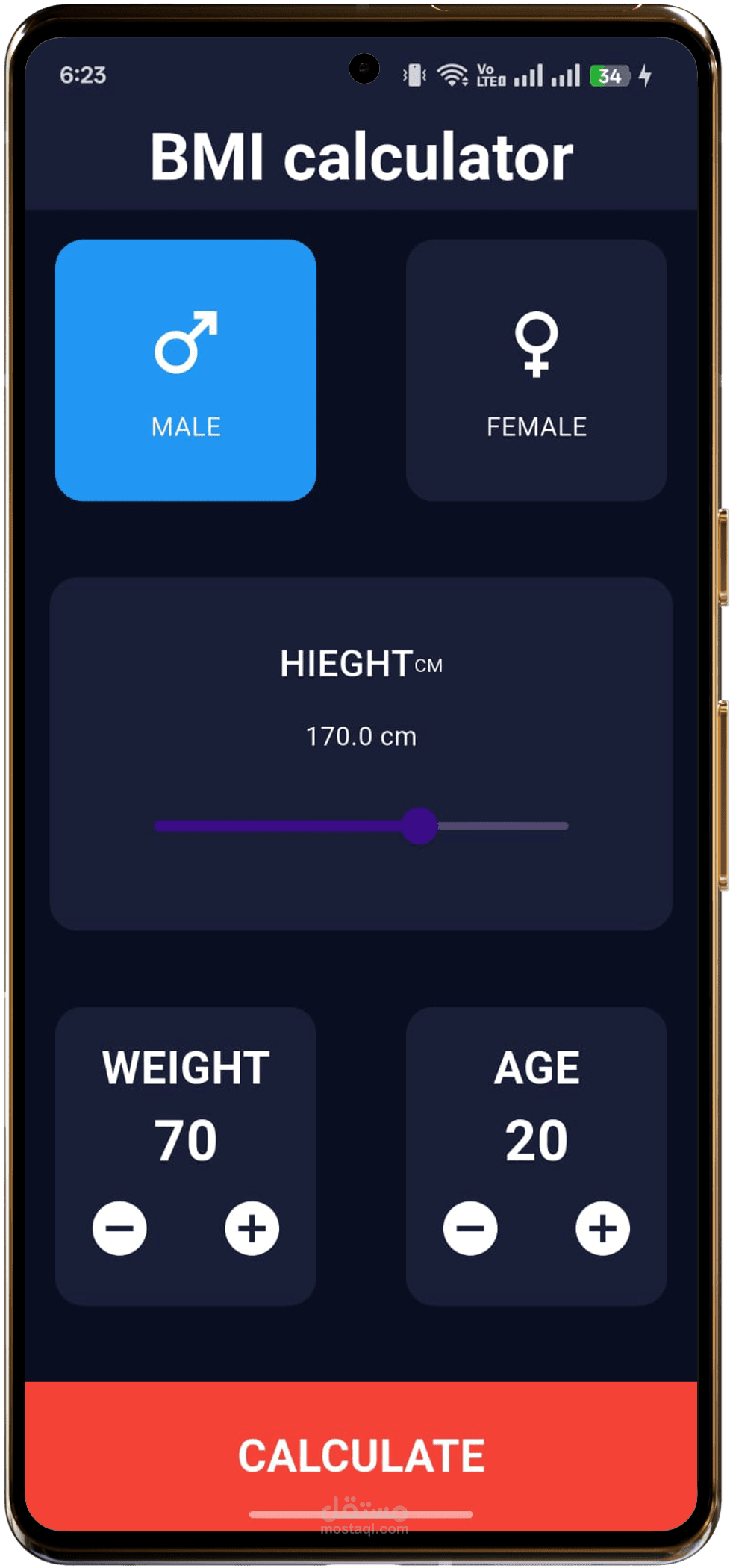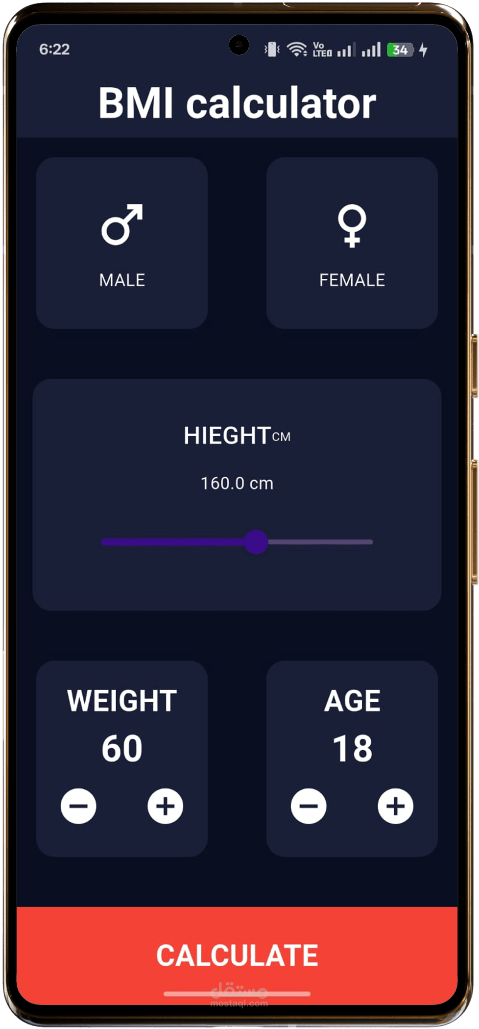 تطبيق جوال تم تطويره باستخدام Flutter لتقدير مؤشر كتلة الجسم (BMI) بطريقة سهلة وسريعة. يتيح التطبيق للمستخدم إدخال الطول والوزن وحساب مؤشر كتلة الجسم فورًا، مع تقديم تقييم وصحي لكل فئة من النتائج.