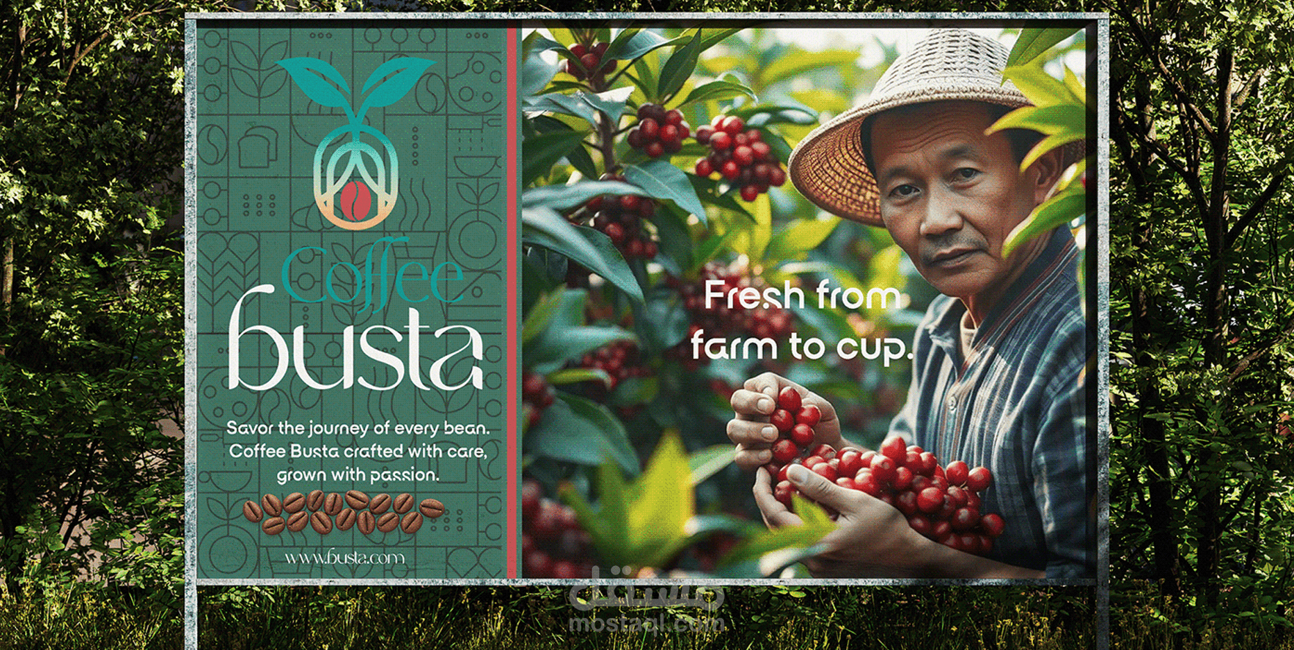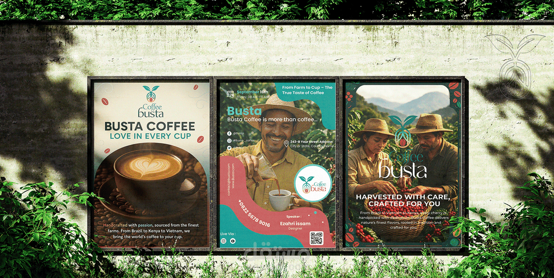 النتيجة هي هوية بصرية طبيعية، نابضة بالحياة، ودافئة تمثل العلامة التجارية Busta Coffee كرمز للتواصل بين الإنسان والطبيعة من خلال فنجان قهوة أصيل.