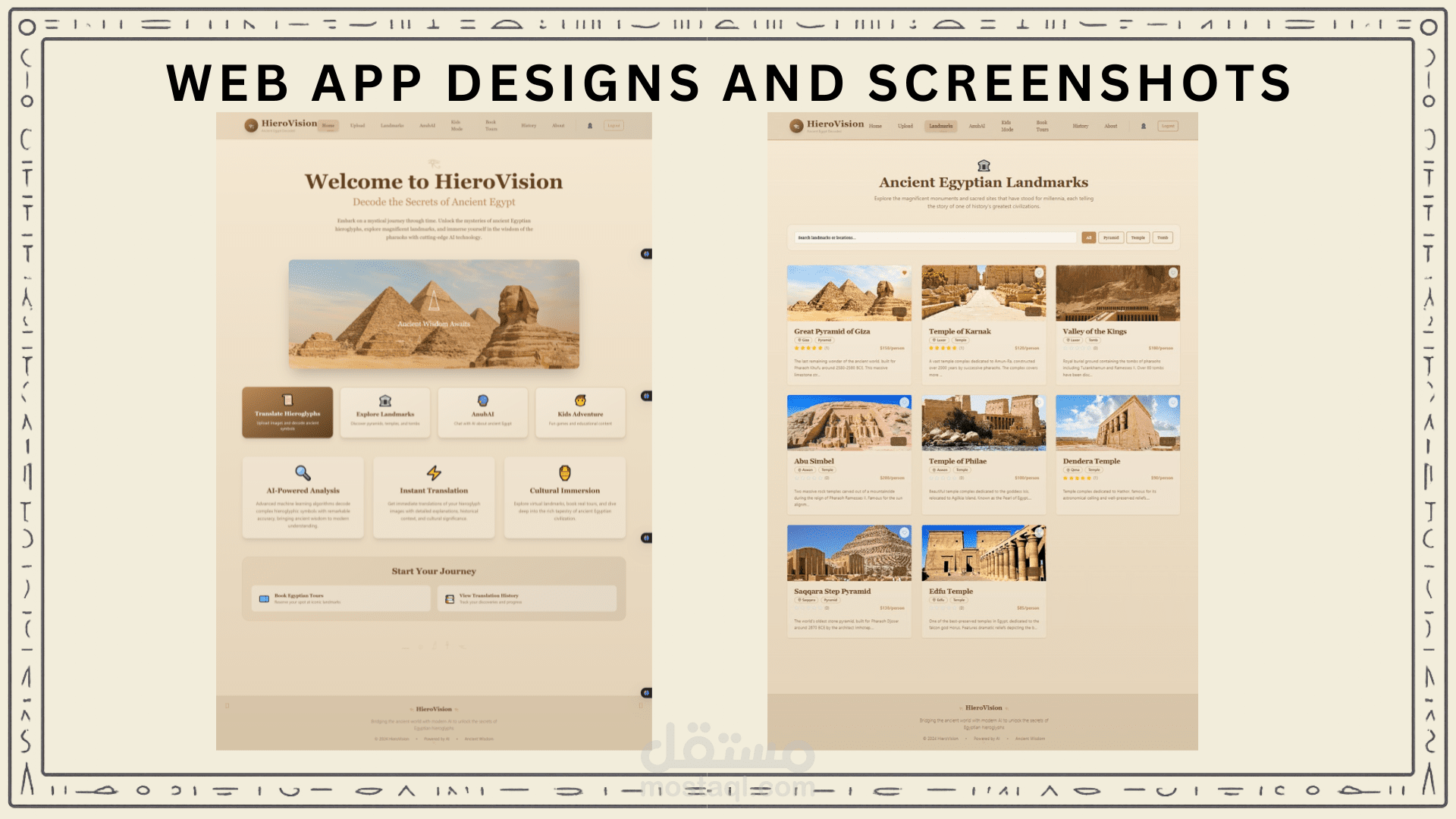 HieroVision هو منصة إلكترونية مبتكرة تعتمد على الذكاء الاصطناعي لسد الفجوة بين التكنولوجيا الحديثة والثقافة المصرية القديمة. تم تصميم المشروع كتطبيق للهواتف المحمولة والويب، بهدف تمكين المستخدمين من جميع الأعمار من استكشاف وتعلّم والتفاعل مع لغة وتاريخ وتراث مصر القديمة بطريقة شيقة وجذابة.