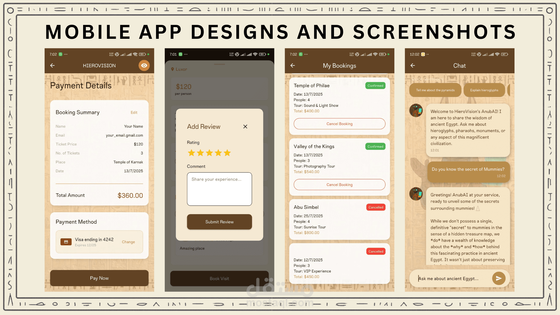 المساعد الذكي المدمج (AnubAI): وجود Chatbot متخصص في الحضارة المصرية يعمل كمدرس خصوصي ومرشد سياحي افتراضي، مما يضيف عمقًا للتجربة التعليمية ويجيب على استفسارات المستخدمين بشكل فوري.