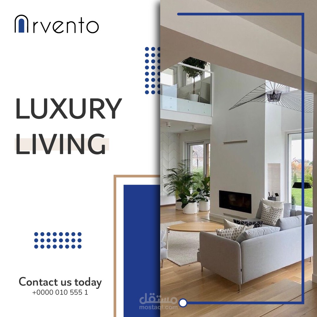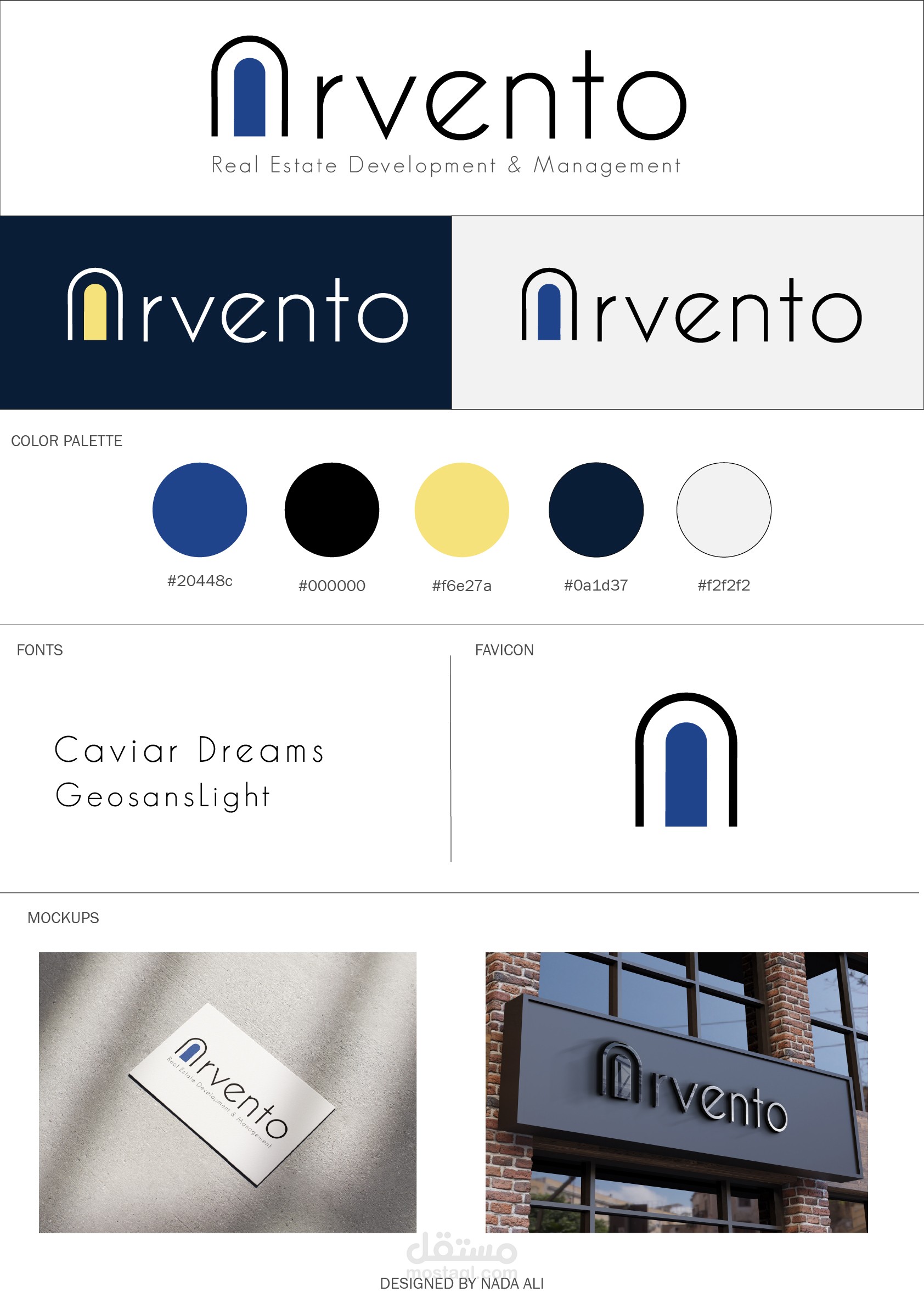 في تصميم شعار Arvento، ركّزت على إبراز شخصية العلامة التجارية كشركة عقارية تجمع بين الفخامة والرؤية المستقبلية.