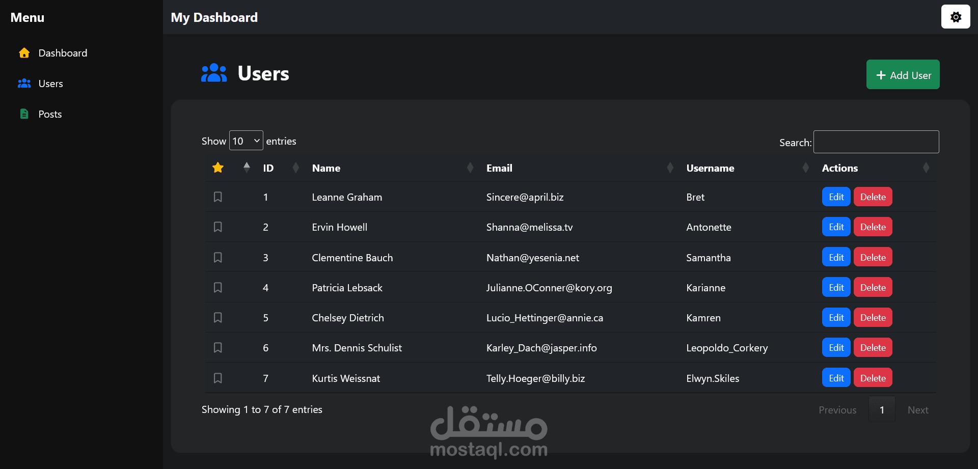 Fake API Integration: Uses JSONPlaceholder to simulate live data fetching.