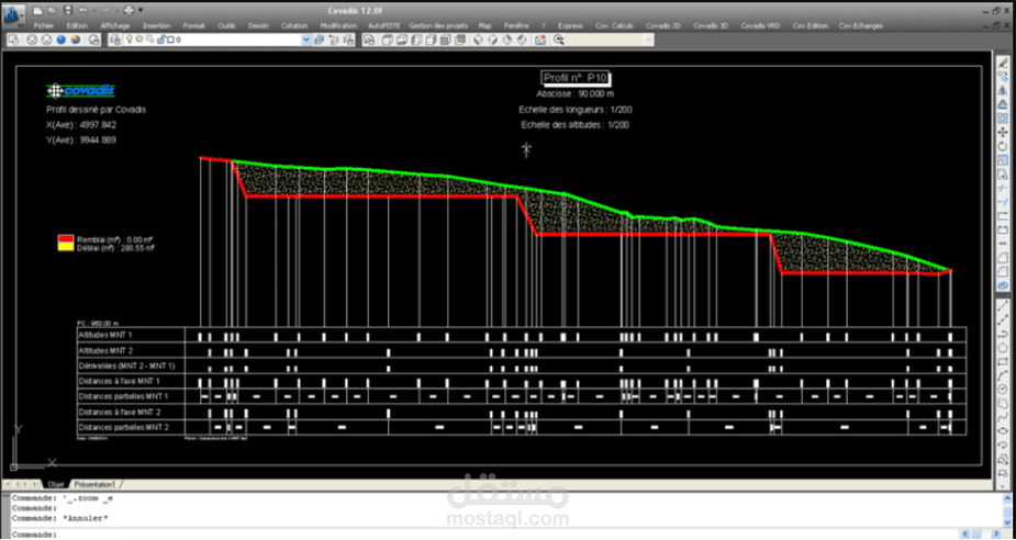 Le dessin des profils en long sur Covadis ou Civil 3D permet de représenter graphiquement l’évolution altimétrique d’un projet linéaire (route, canalisation, voie ferrée, etc.), en affichant le terrain naturel, le projet et les éléments associés (piquetage, pente, altitudes, etc.).