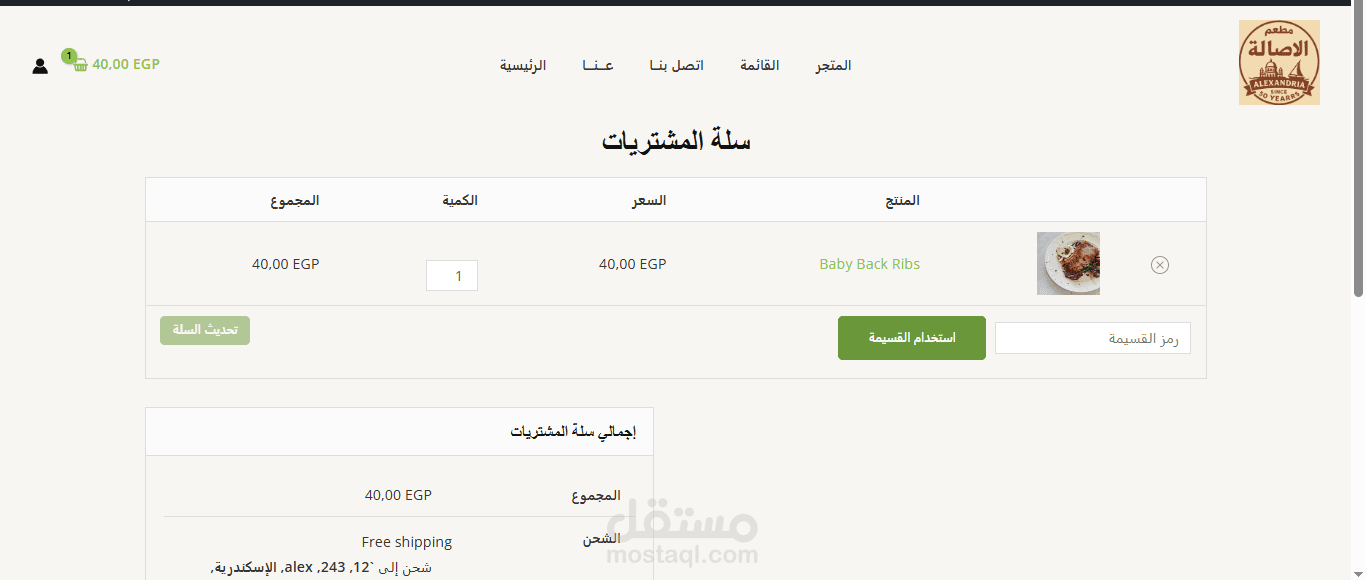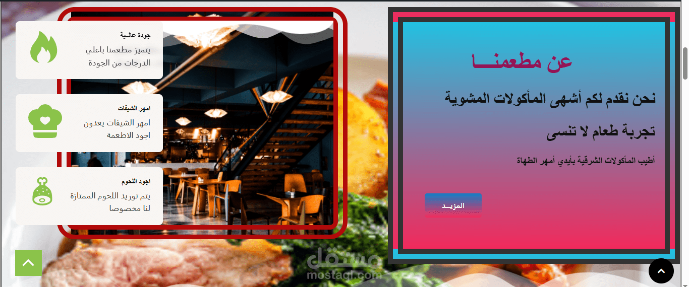 يتكون من عدة صفحات الرئيسية - عنا -اتصل بنا - القائمة -المتجر
