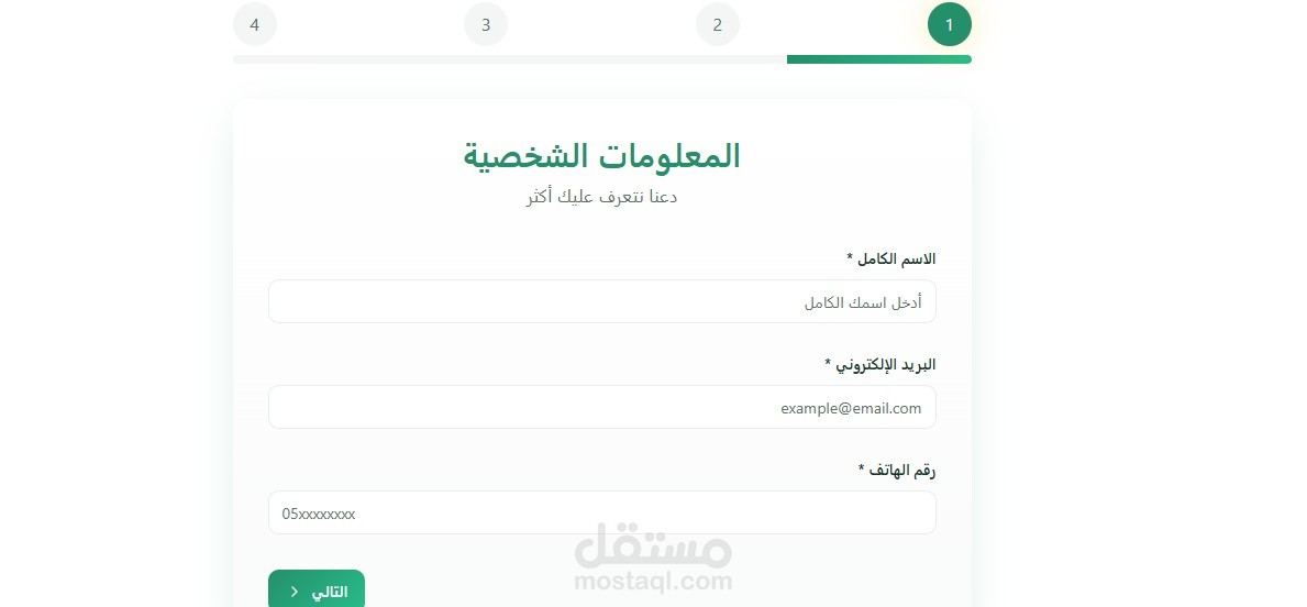 هنلاحظ فى صفحه فى form من أربع خطوات كل خطوه عباره بيانات وليكن بيانات شخصيه ، بيانات العقار ، بيانات الموقع ، بيانات ماليه وبيتم التأكيد وإرسالها إلى نظام