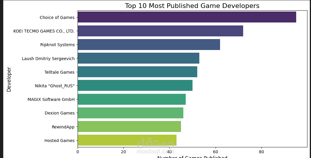 أكثر المطورين نشاطًا وعدد الألعاب التي قاموا بنشرها.
