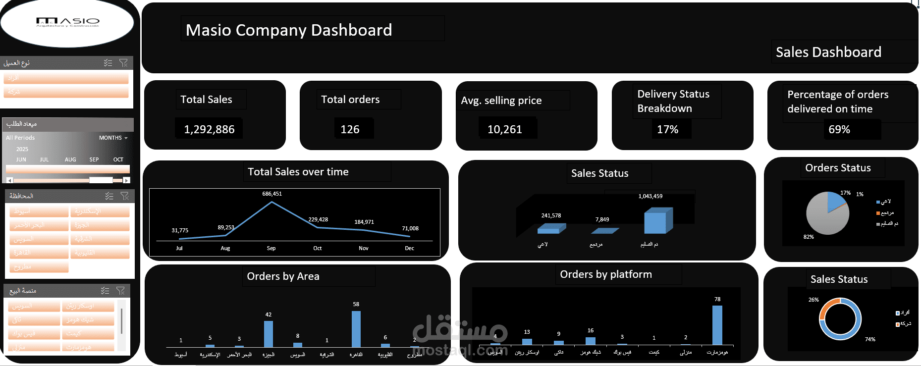 مشروع كامل لعمل داش بورد لشركه ماسيو المصريه قمت بتنظيف البيانات بستخدام (power query) وقمت بعمل ال(kpis)