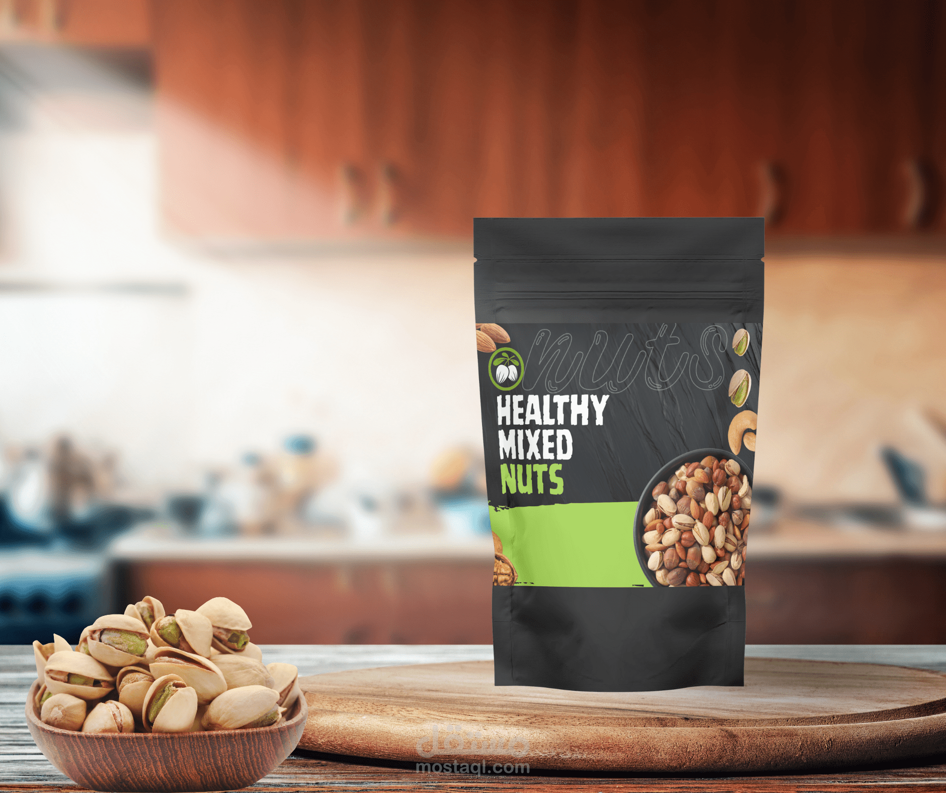 تم استخدام ألوان متناسقة مع الطابع العام للمنتج، مع توزيع مدروس للعناصر (الاسم، الشعار، المكونات، الوزن، والرموز البصرية) لضمان سهولة القراءة وجاذبية المظهر على الرف أو في الصور الدعائية.