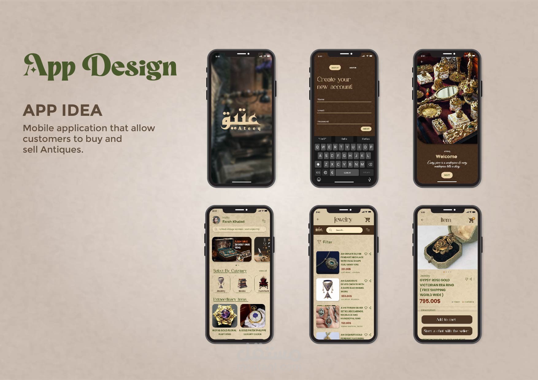 Ui design for antiques mobile application that allows costumers to buy and sell antiques