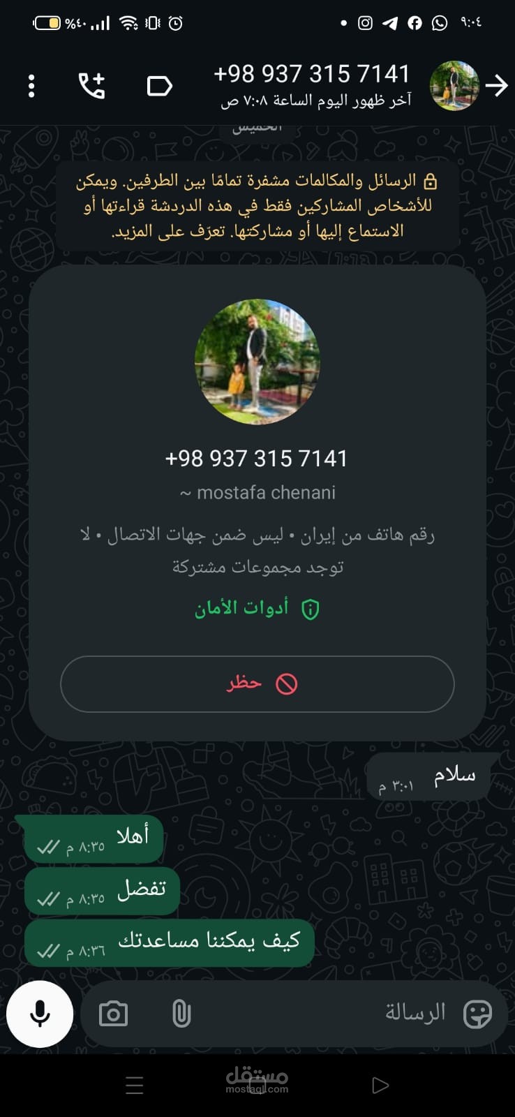 للتواصل أو التحقق من طبيعة عملي: