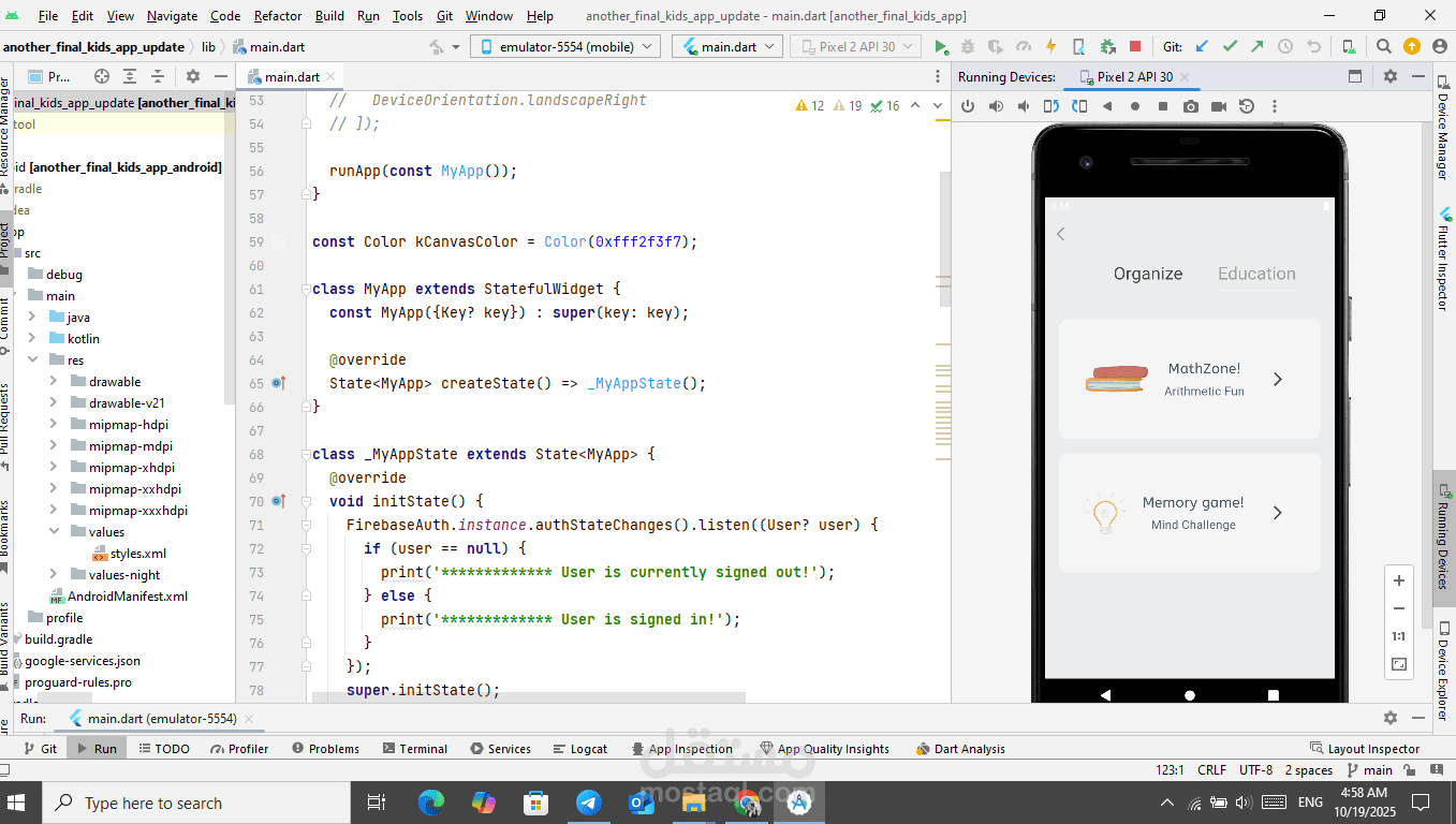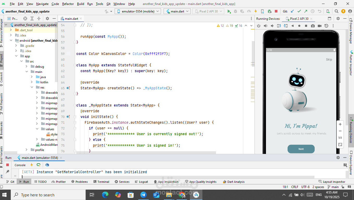 firebase_core: أساس المصادقة، حيث تعمل على تهيئة خدمات Firebase لتمكين إدارة حسابات المستخدمين (الآباء) بشكل فعال.