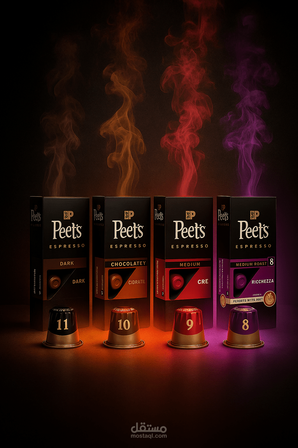 ركزت في التصاميم على إبراز فخامة البن وجودته العالية مع الحفاظ على الطابع الأصيل للعلامة التجارية، ليظهر كل عمل بتفاصيل دقيقة وأجواء دافئة تعبّر عن روح القهوة الحقيقية.