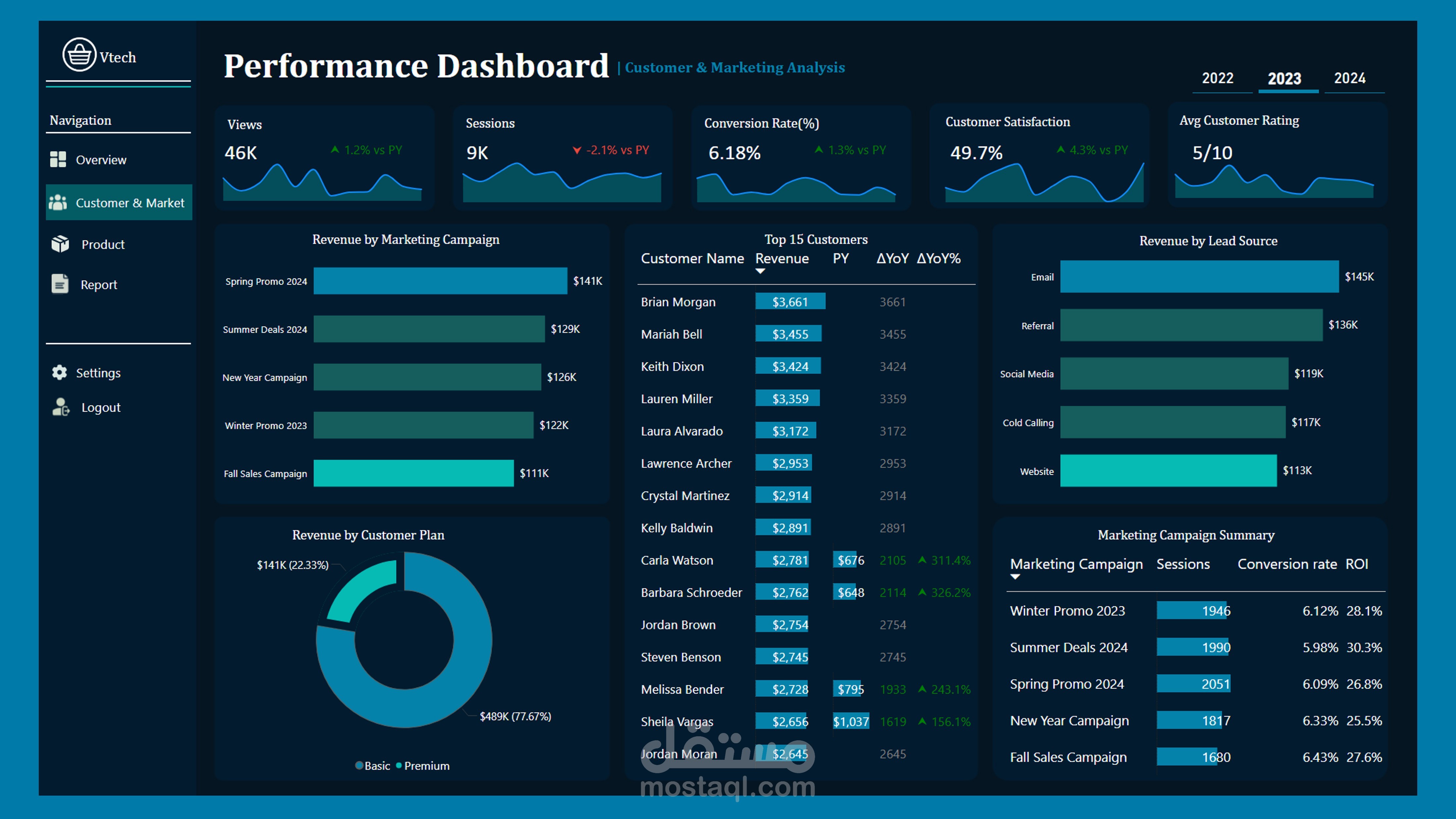 هذا المشروع يعرض لوحة بيانات (Dashboard) تفاعلية وشاملة تم تصميمها لمساعدة الشركات على مراقبة وتحليل أدائها المالي والتسويقي بشكل دقيق ولحظي، بهدف تحويل البيانات المعقدة إلى رؤى واضحة تدعم اتخاذ القرار.