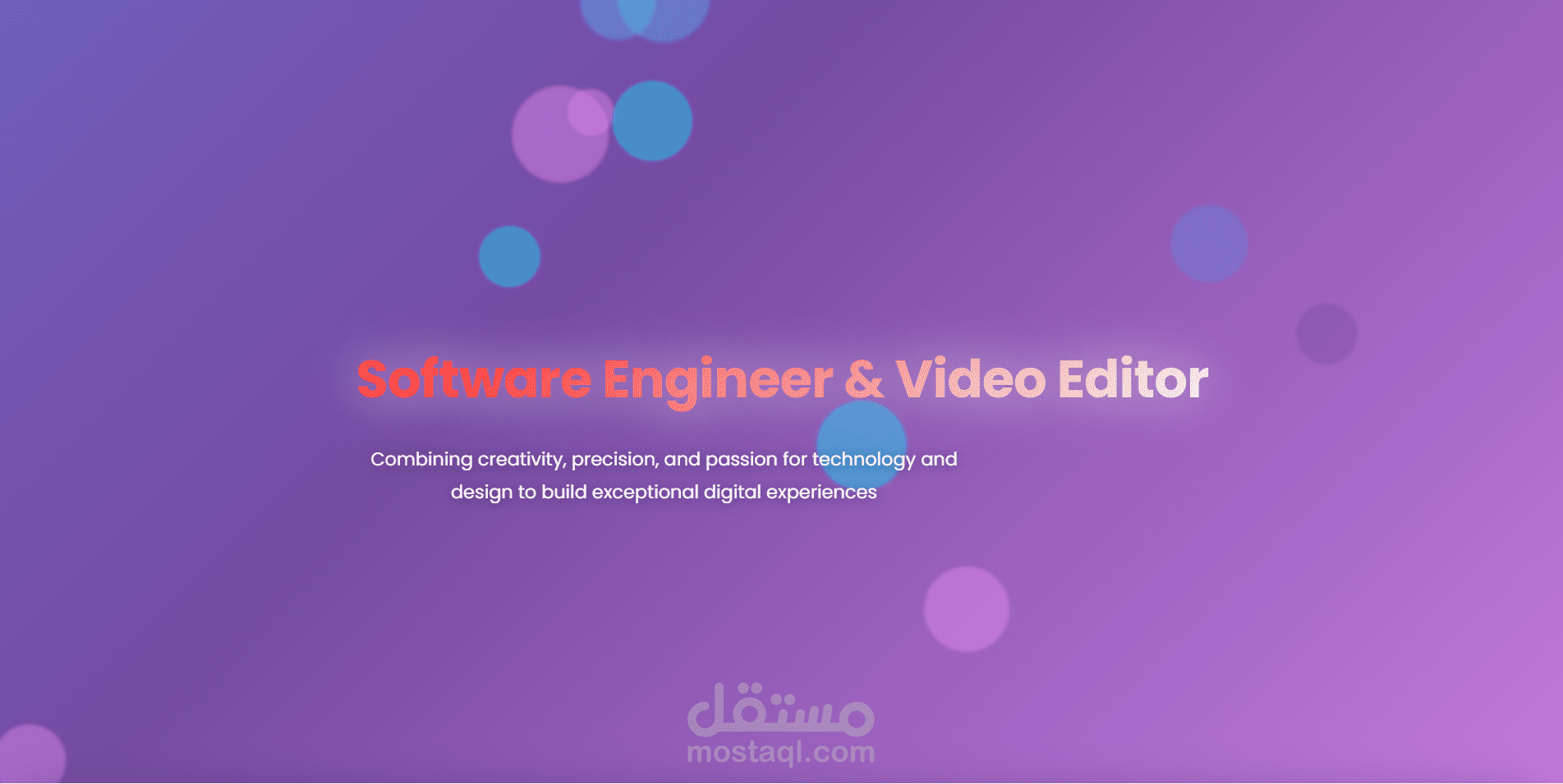 مشروعي هو إنشاء بورتفوليو شخصي تفاعلي يجمع بين البساطة والجمال، ويُظهر مهاراتي كمطور برمجيات ومحرر فيديو بطريقة عصرية ومميزة.