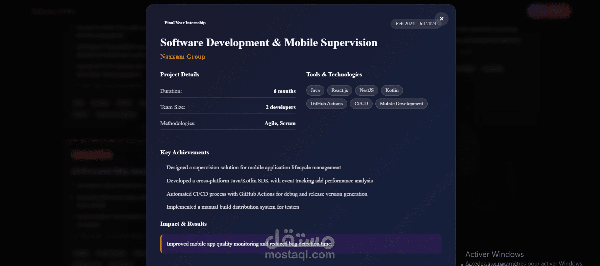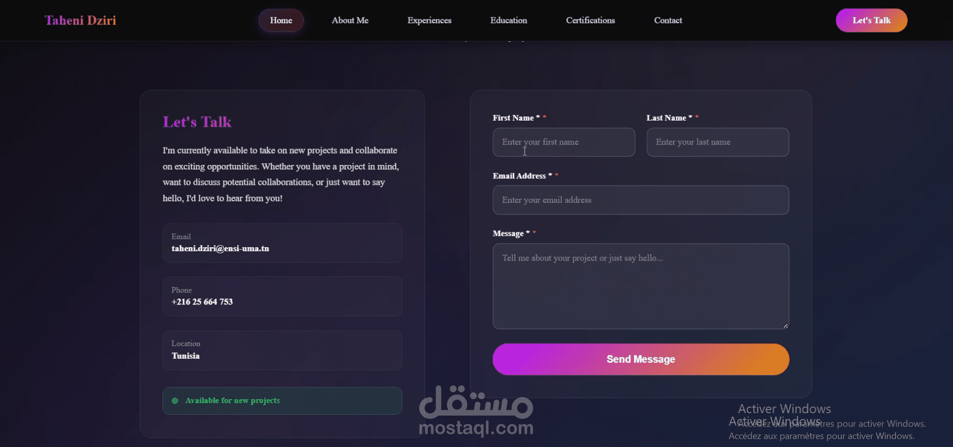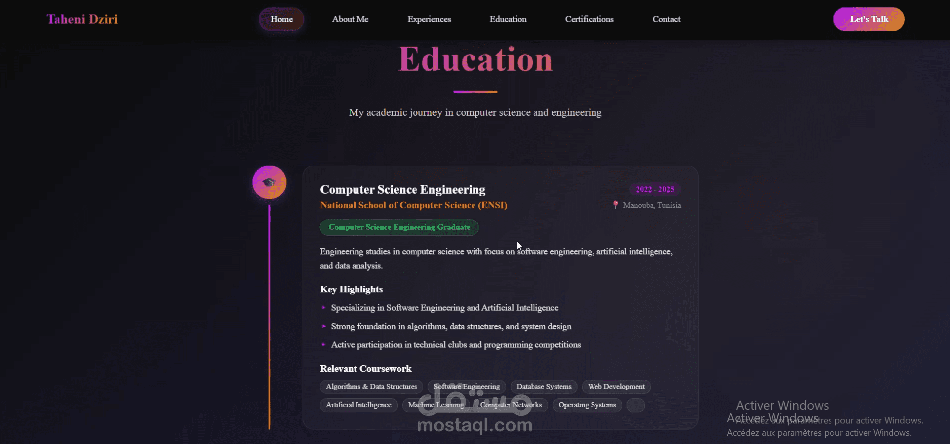 قمتُ بتطوير موقع إلكتروني شخصي يعرض مسيرتي المهنية ومشاريعي في مجال هندسة البرمجيات.