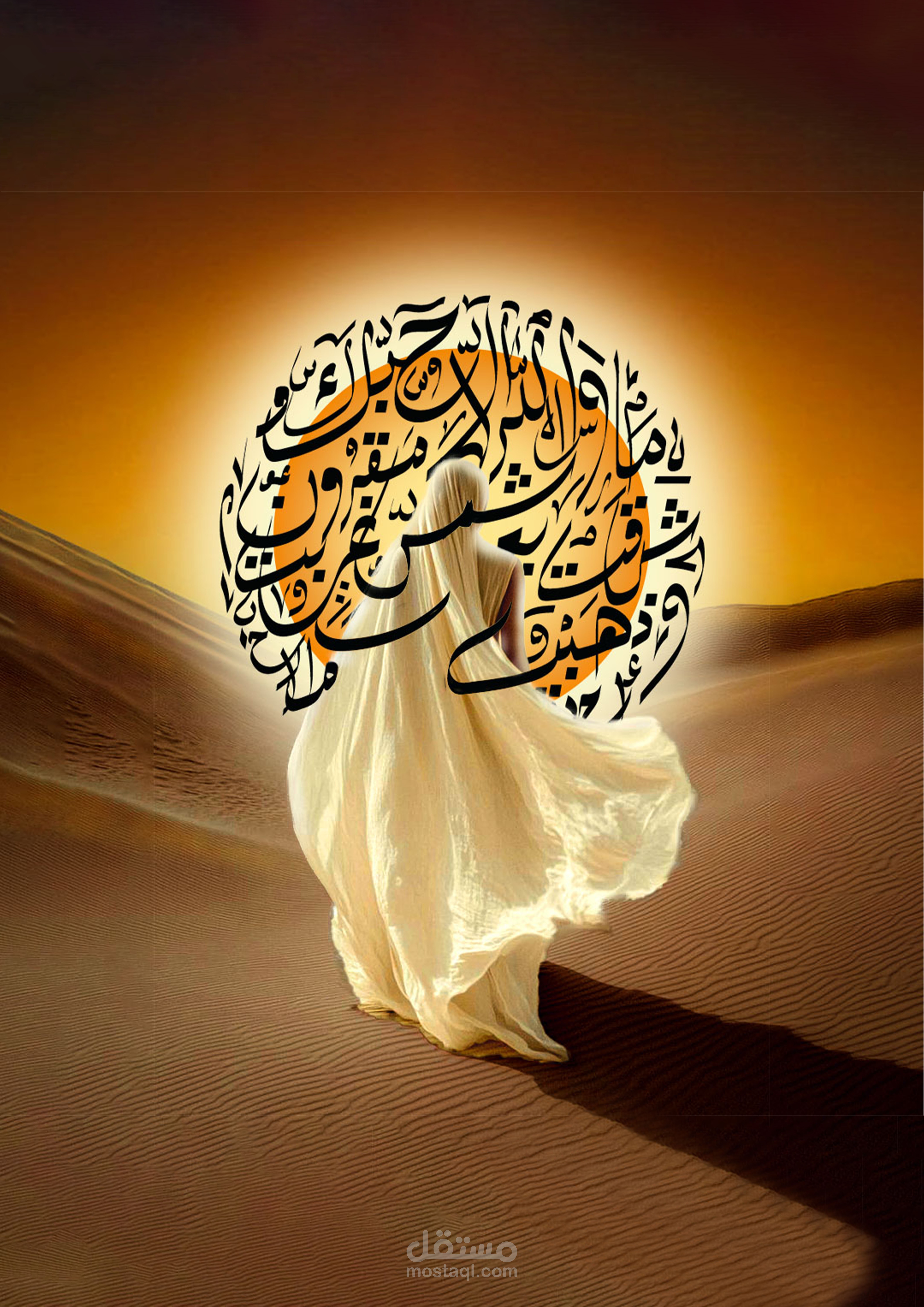 تعكس الخلفية الصحراوية جذور الثقافة العربية ومناظرها الطبيعية الخالدة، في حين يحمل ضوء غروب الشمس —بألوانه الدافئة والرومانسية— جمالاً إلهياً وعمقاً عاطفياً.