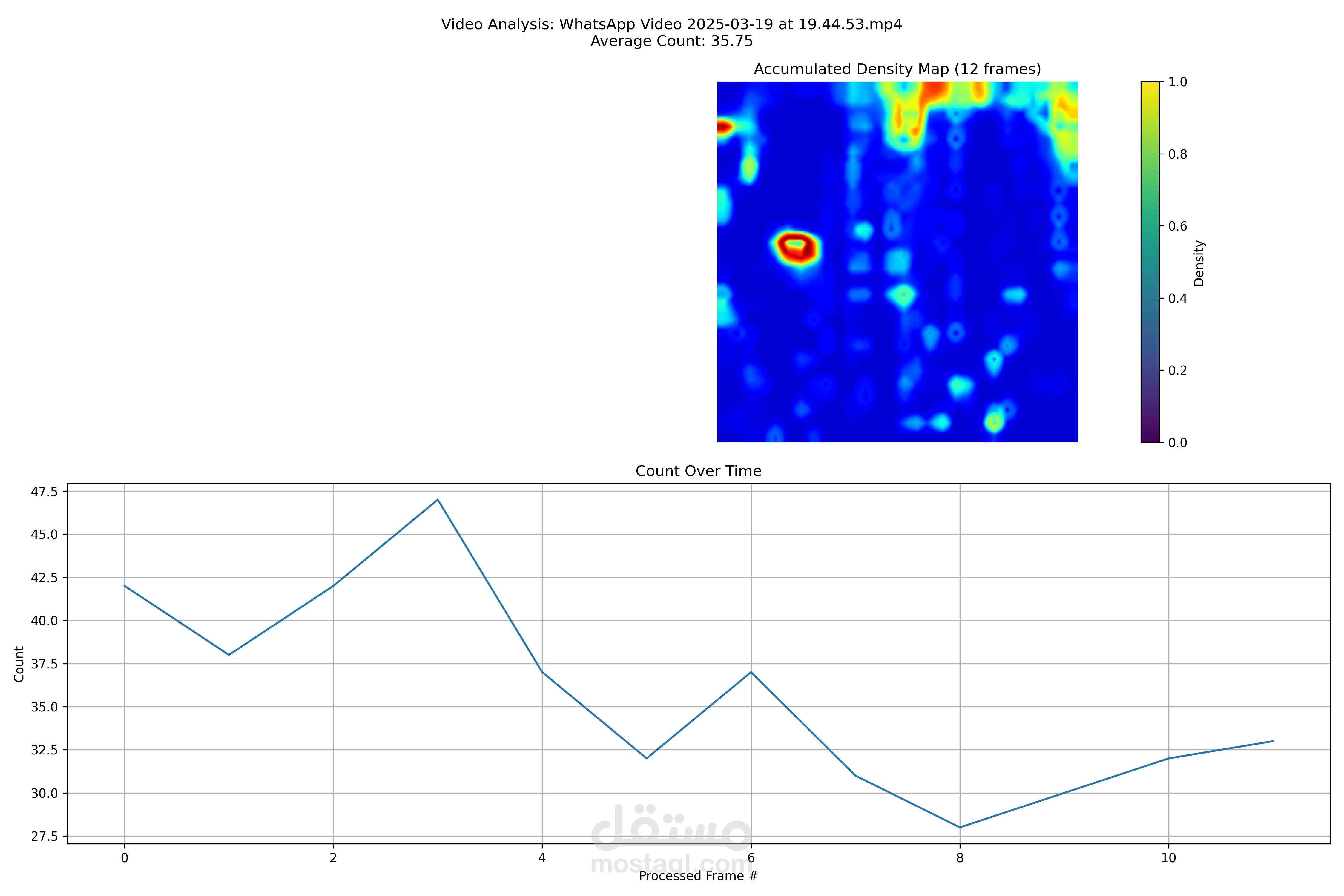 التحليل متعدد الوسائط: دمج عد الحشود، كشف الحركة (SSIM-based)، خرائط كثافة الحرارة، وطرح الخلفية لفهم شامل للمشهد