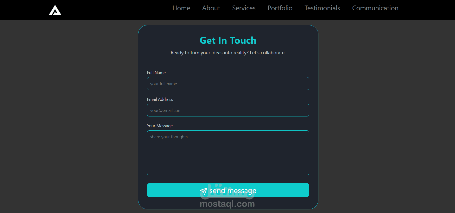 موقع بورتفوليو شخصي تفاعلي (Animated Portfolio) تم تصميمه وتطويره باستخدام React.js مع مؤثرات حركة احترافية باستخدام Framer Motion و Tailwind CSS.