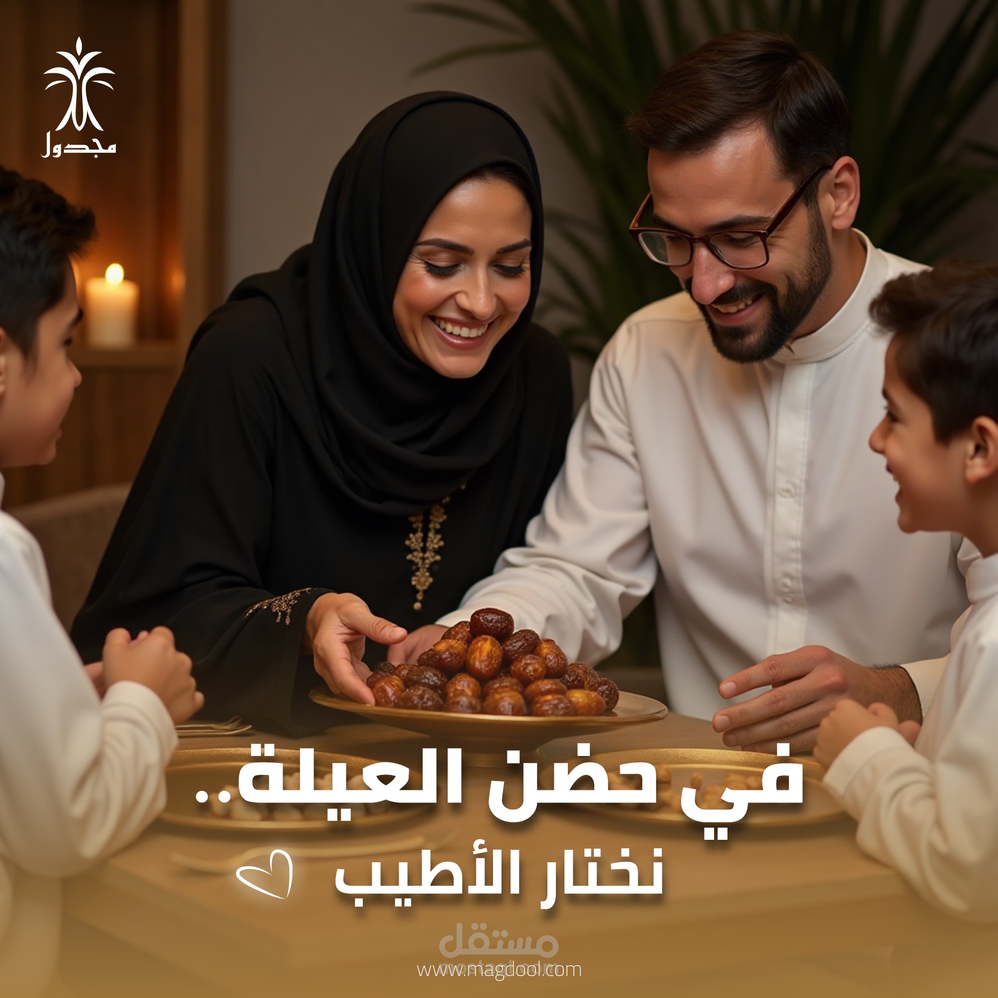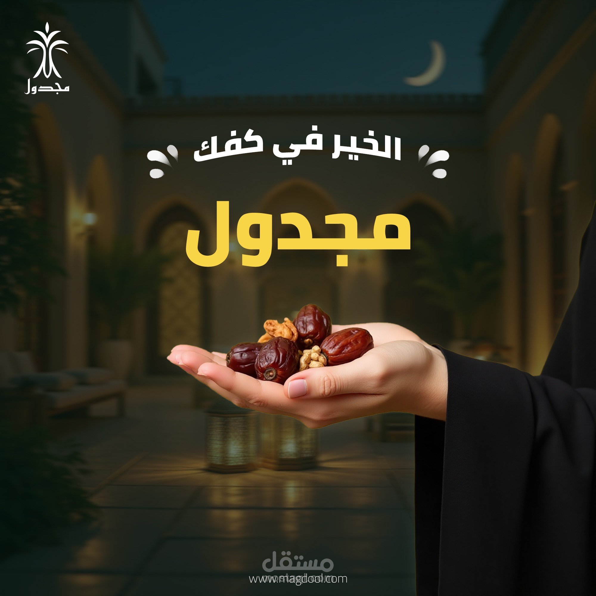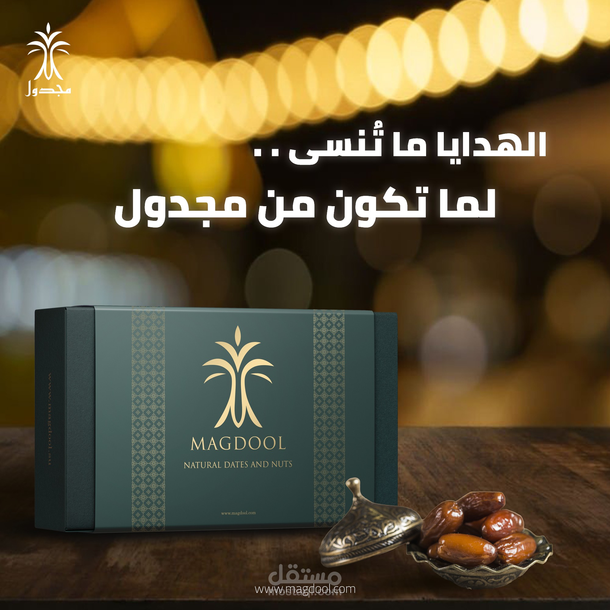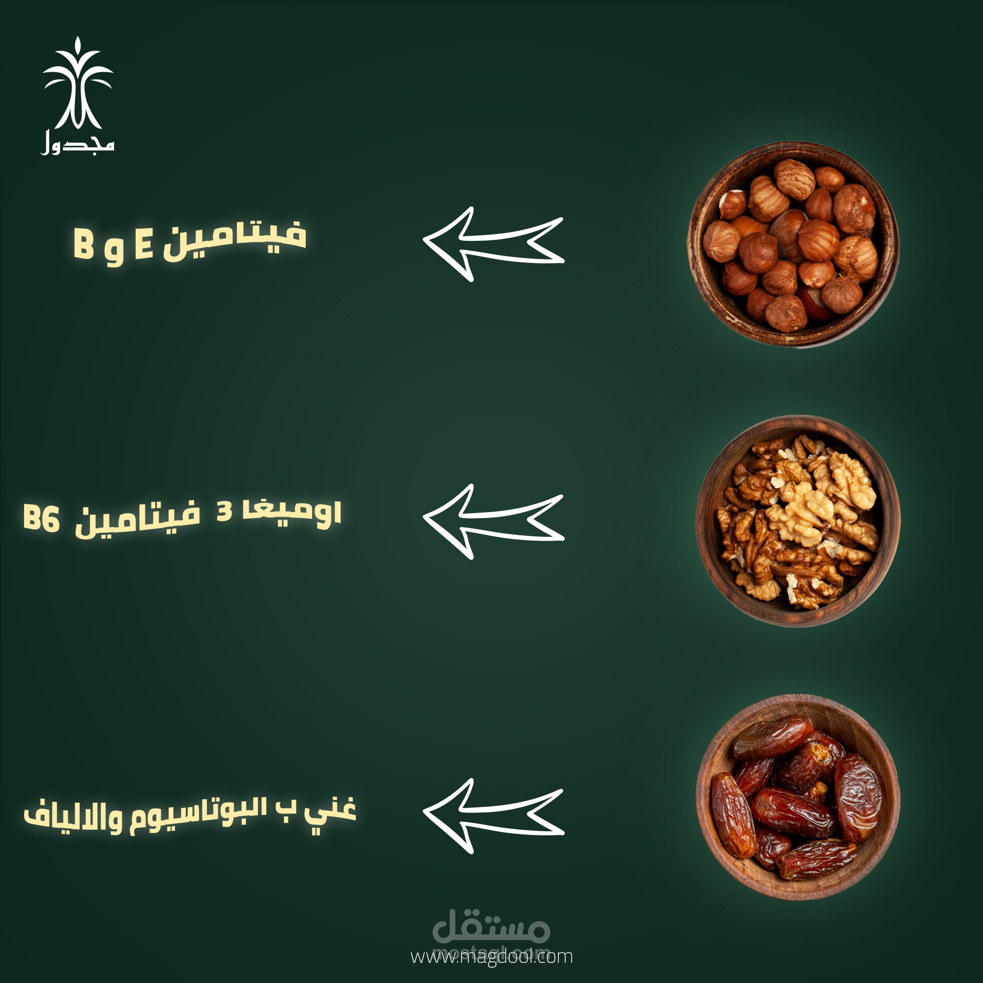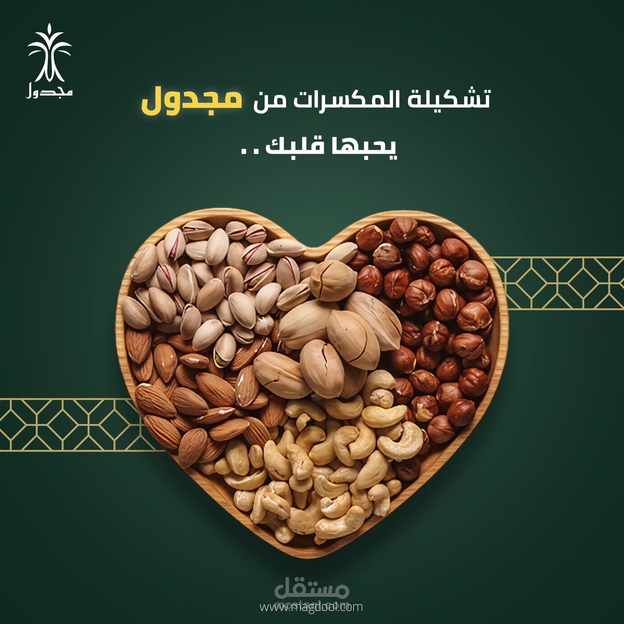 تصميمات سوشيال ميديا لحساب البراند عبر مواقع التواصل الاجتماعي ل مجدول و هو علامة تجارية سعودية متخصصة في تقديم أفخر أنواع التمور والمكسرات المختارة بعناية