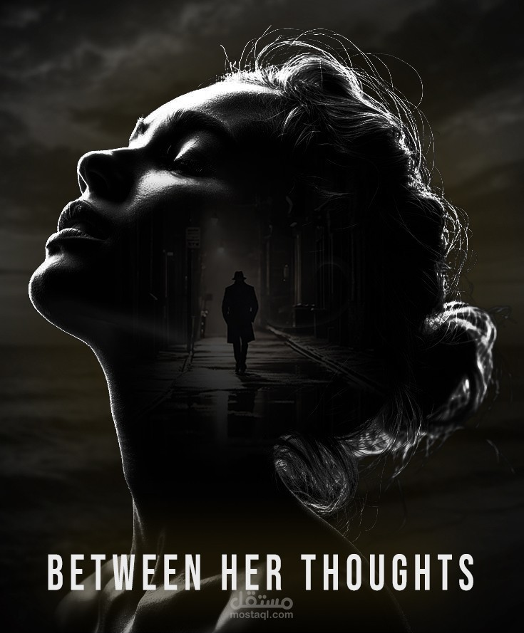 تصميم فني تصوّري بالكامل من فكرتي وتنفيذي بعنوان Between Her Thoughts.