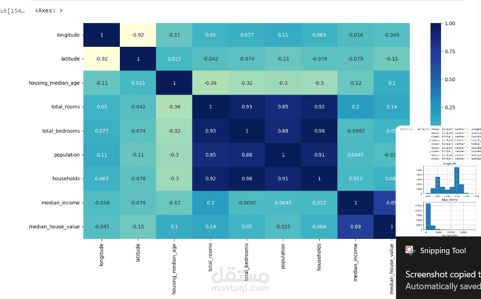 Built a predictive model to estimate housing prices using regression techniques. The workflow included data cleaning, feature engineering (e.g. rooms per household, bedrooms per room, population per household), encoding categorical variables (such as ocean_proximity), splitting into train/test sets, and training a Linear Regression model. The project also includes evaluation of model performance via metrics like MSE, RMSE, and R² to validate accuracy