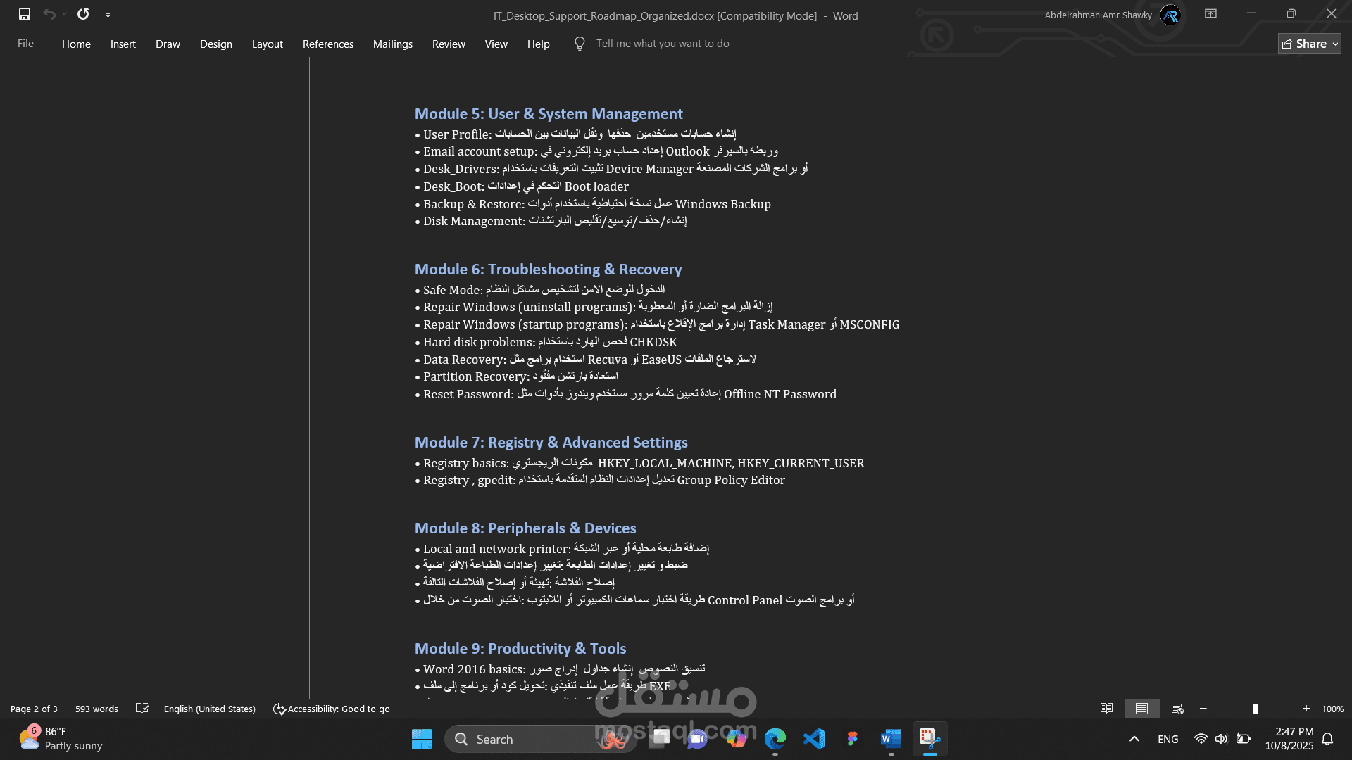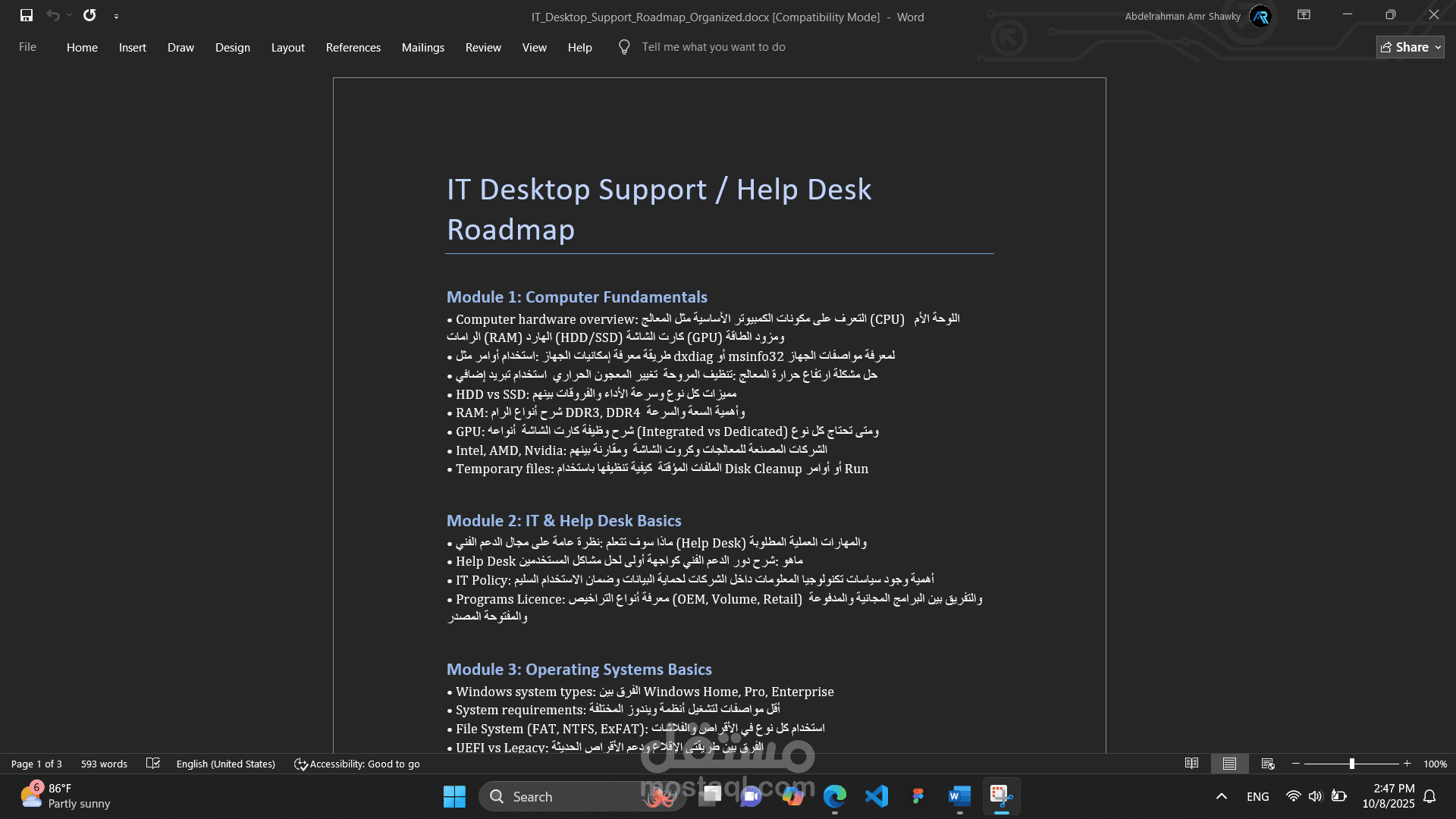 أنا عبدالرحمن عمرو مهندس كمبيوتر أقدّم لك خدمة شرح وتدريب متكامل في مجال الدعم الفني لتقنية المعلومات موجه خصيصًا للمبتدئين أو لأي شخص حابب يبدأ طريقه في مجال الـ IT بشكل عملي بعيد عن التعقيد النظري