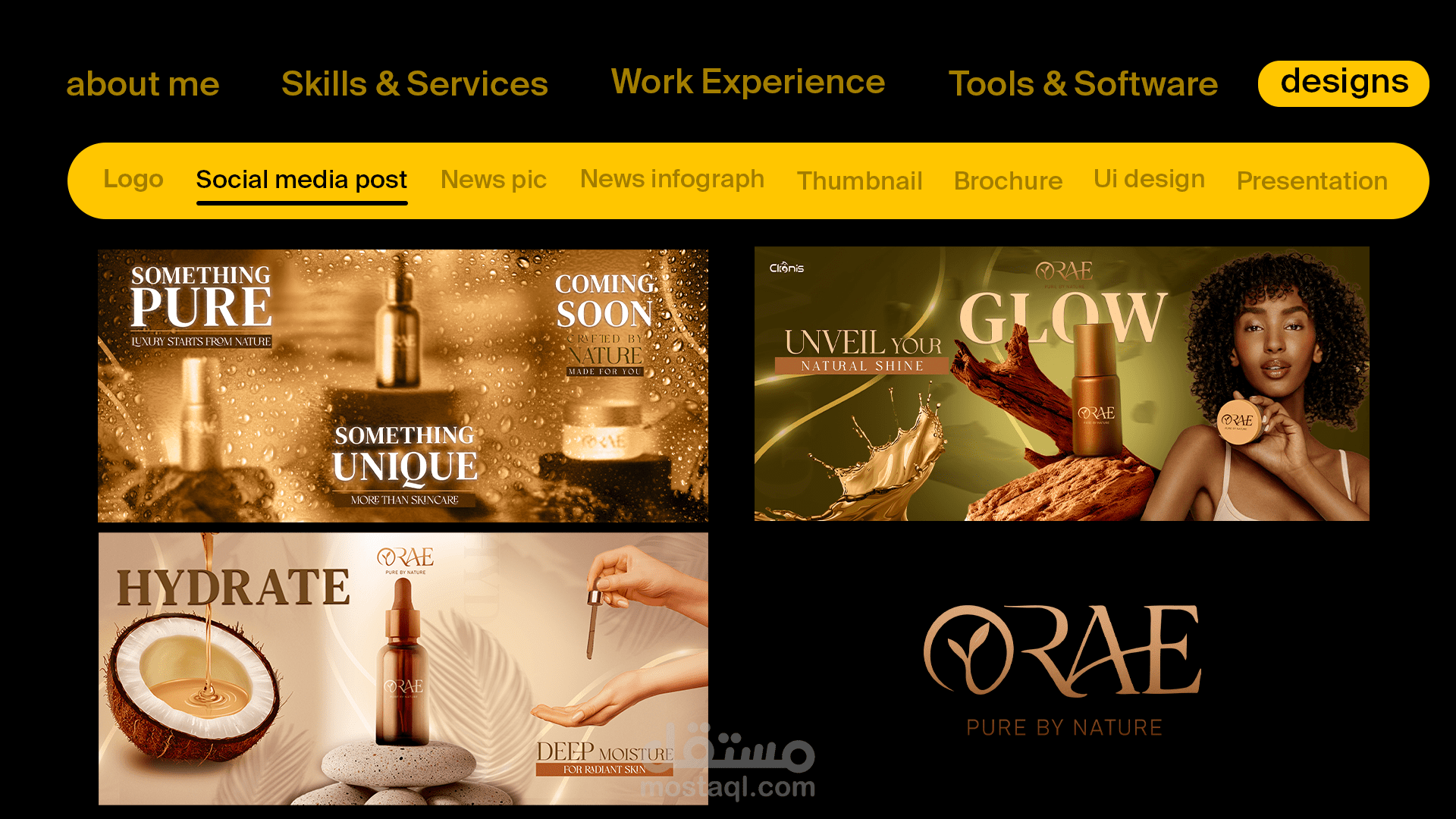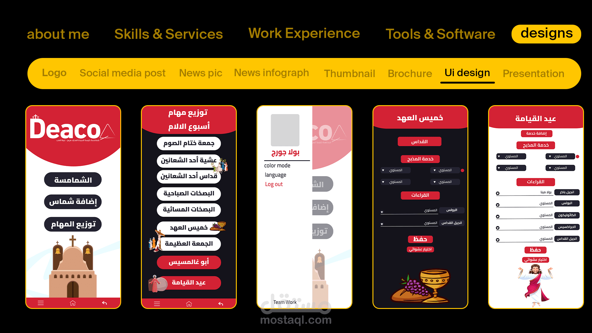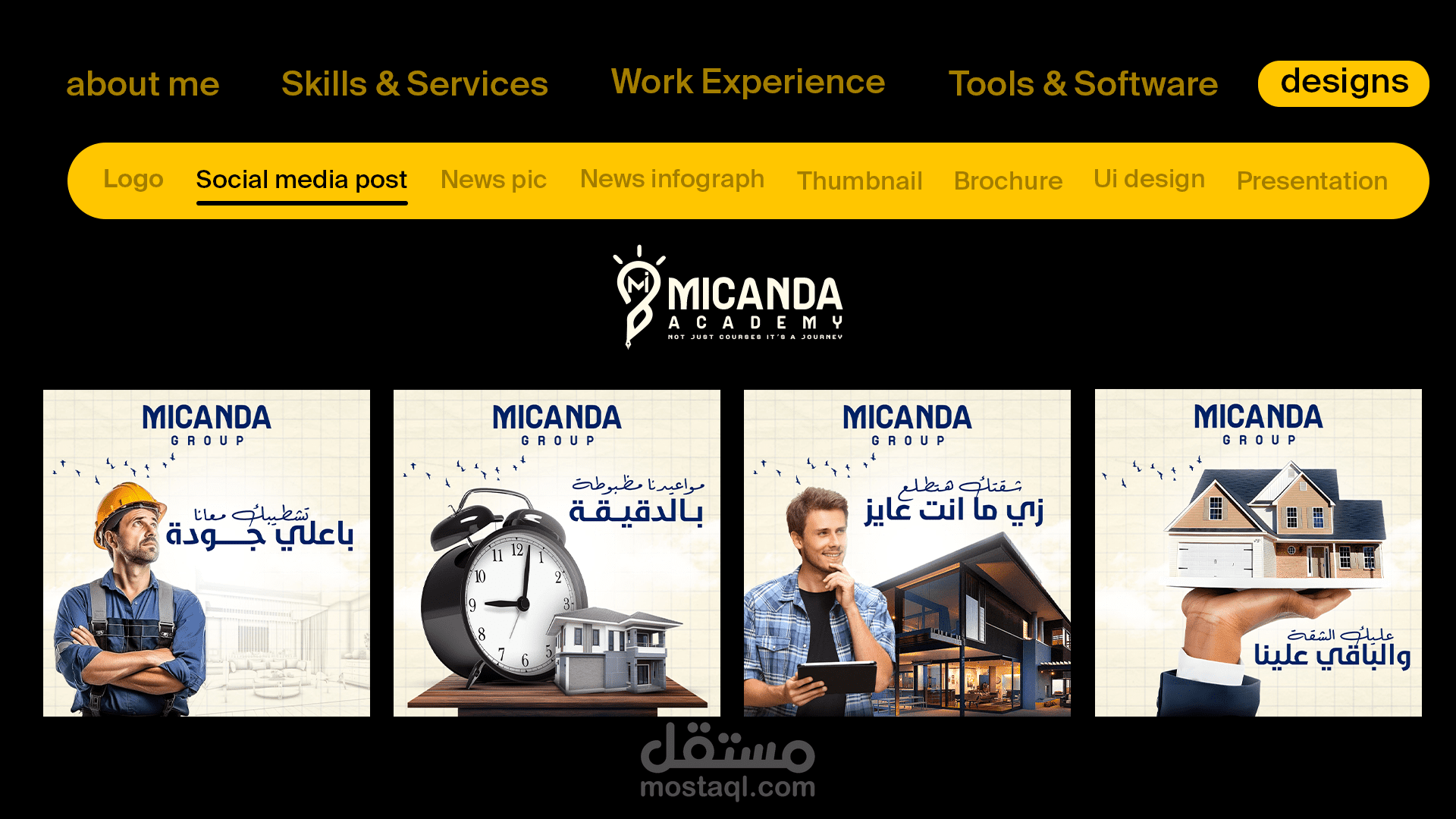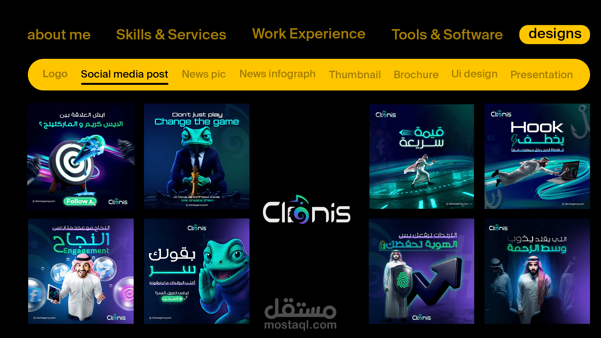 My portfolio includes social media designs in various fields, thumbnail designs, logos, and user interface designs.