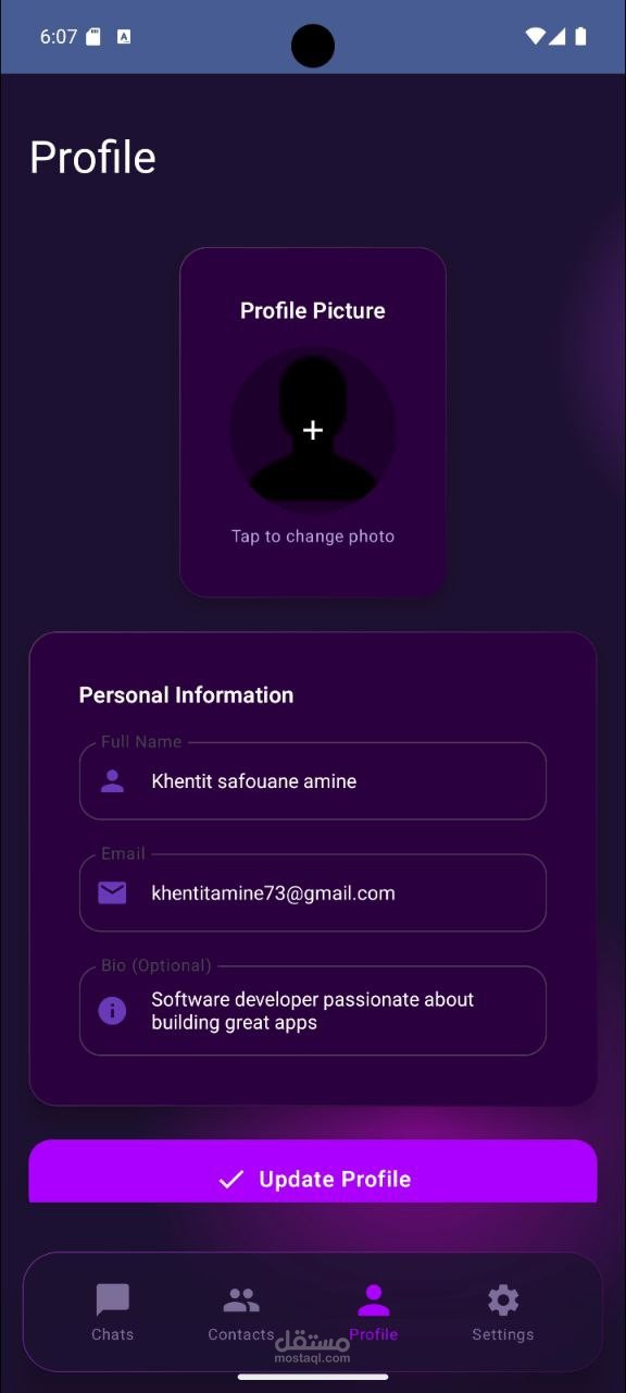 The mobile version, developed with Kotlin and Jetpack Compose, delivers a modern, native interface that syncs messages in real time with the backend.