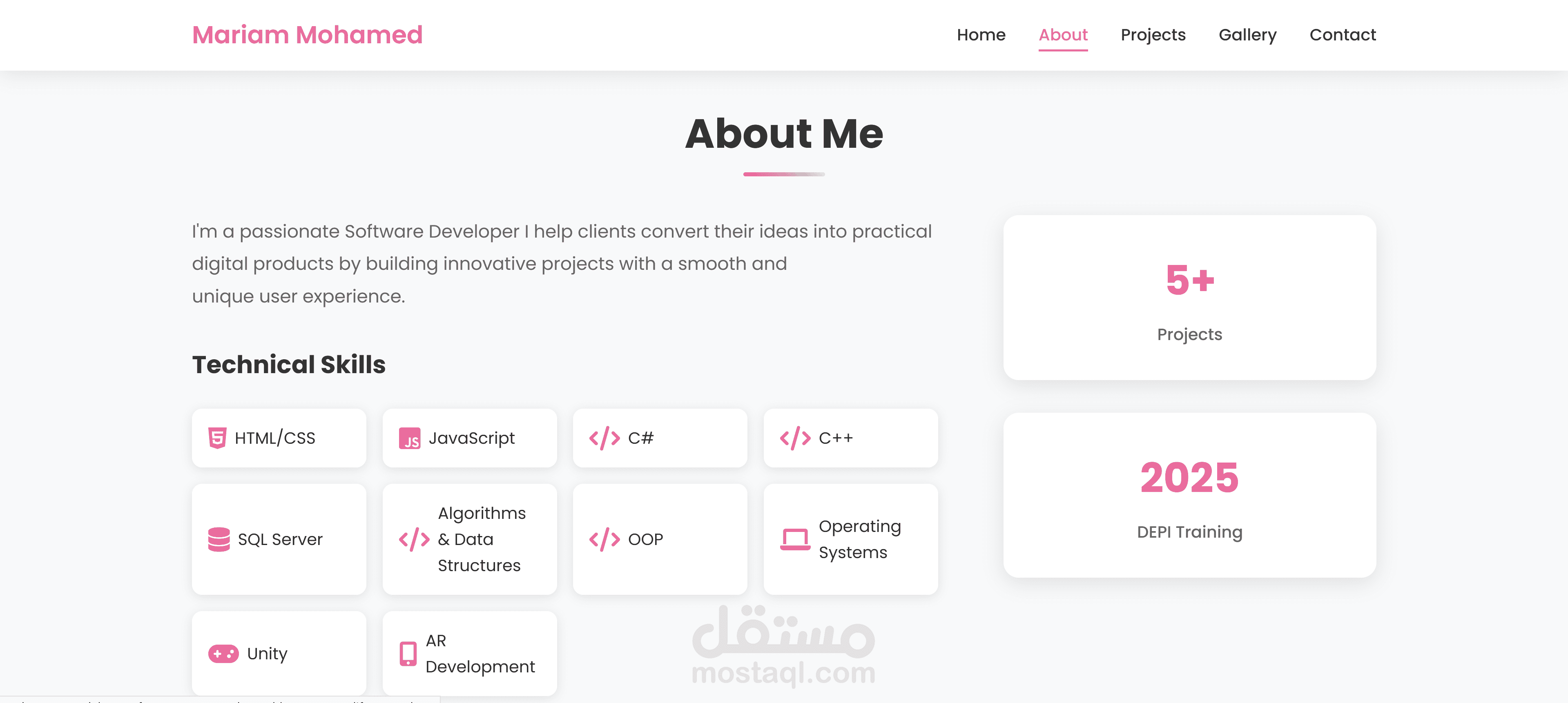 قمت بتصميم بورتفوليو شخصي بتصميم عصري واحترافي يعرض المهارات والأعمال بطريقة منظمة وجذابة.