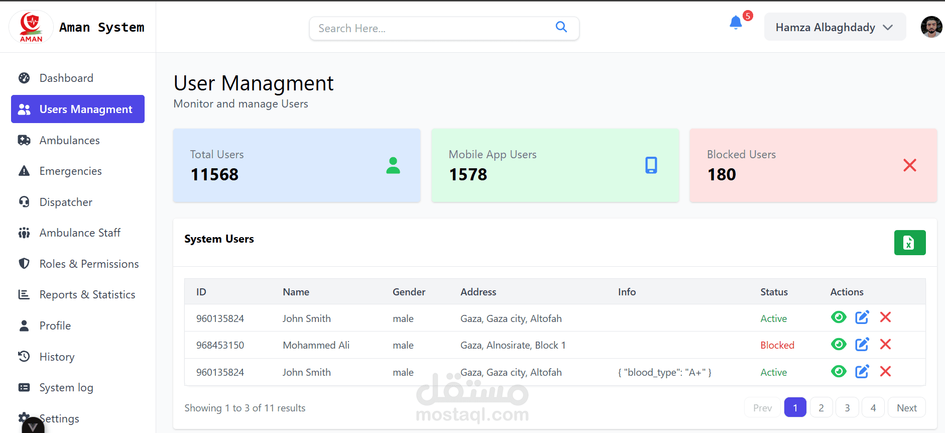 إدارة جميع المستخدمين (الموزعين، طواقم الإسعاف، المدنيين).