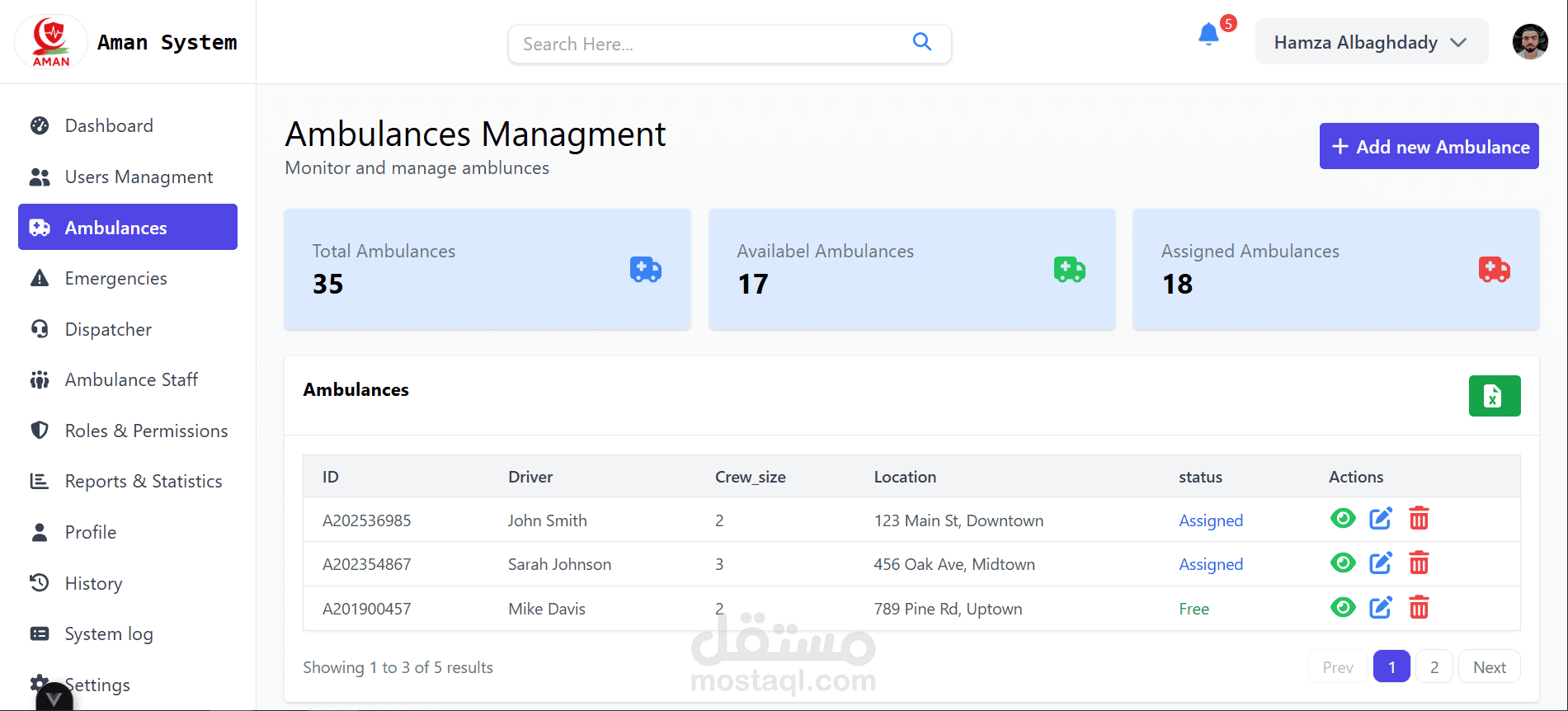 مراقبة سيارات الإسعاف وإدارتها في الوقت الحقيقي.
