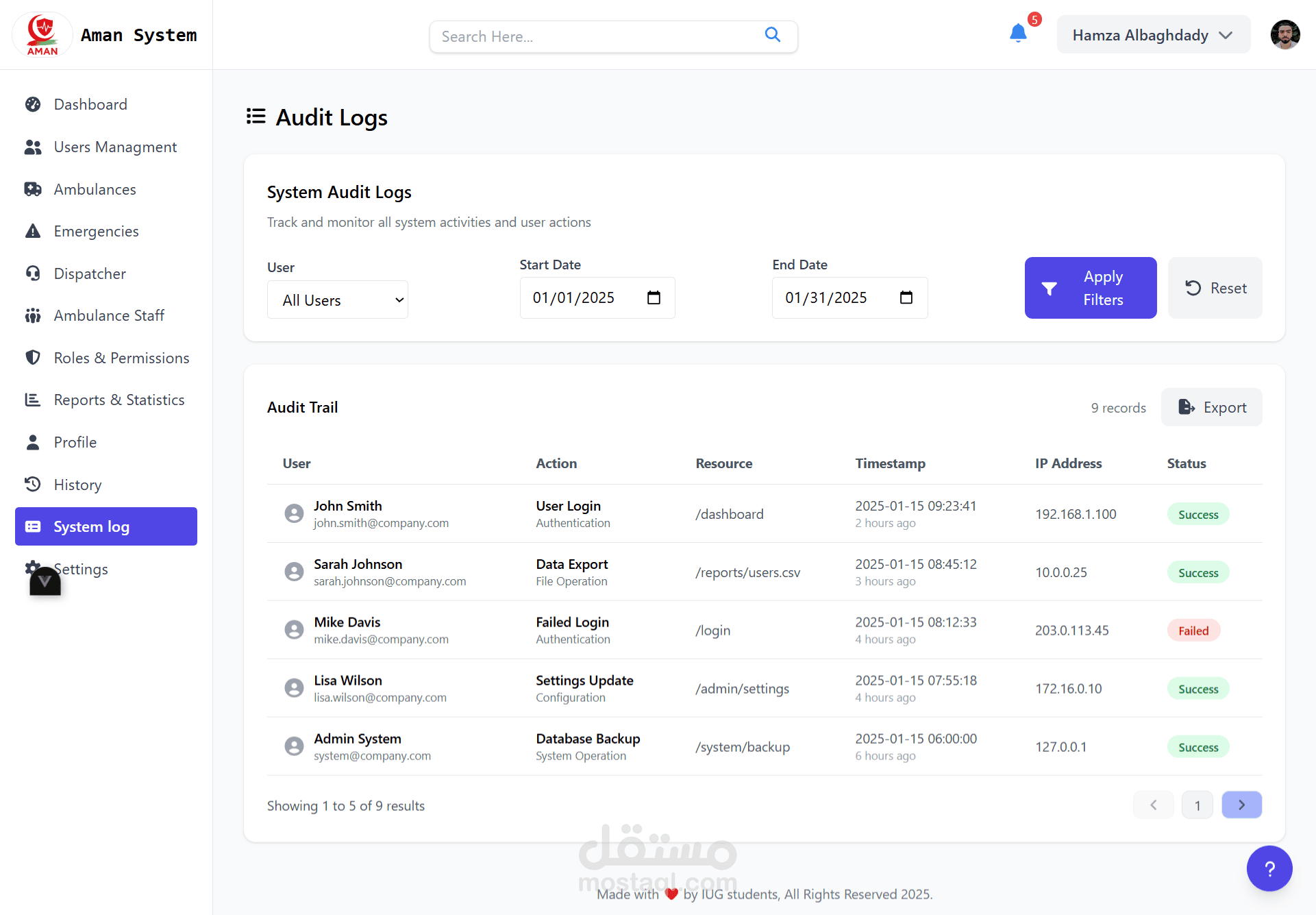 الوصول إلى الإحصاءات والتقارير ومراجعة سجل العمليات (Audit Logs) لمعرفة من قام بأي إجراء.