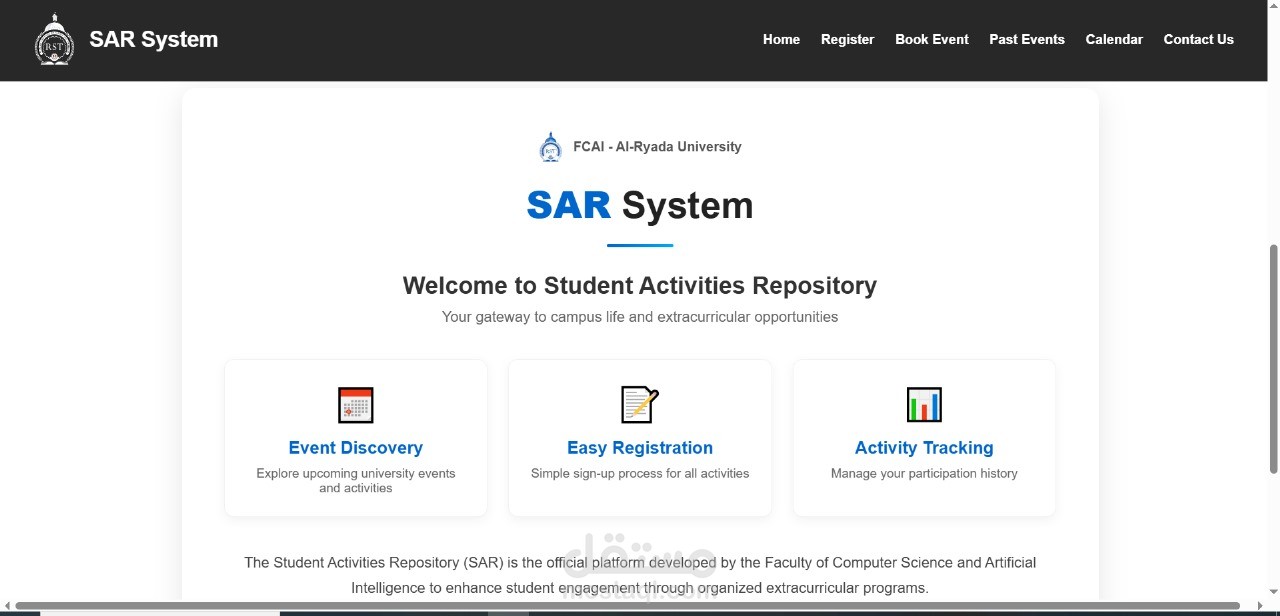 SAR is an intuitive, front-end platform designed to enhance student engagement by simplifying how campus activities are organized, tracked, and displayed. It brings structure to student events, ensuring every initiative is accessible, documented, and celebrated.