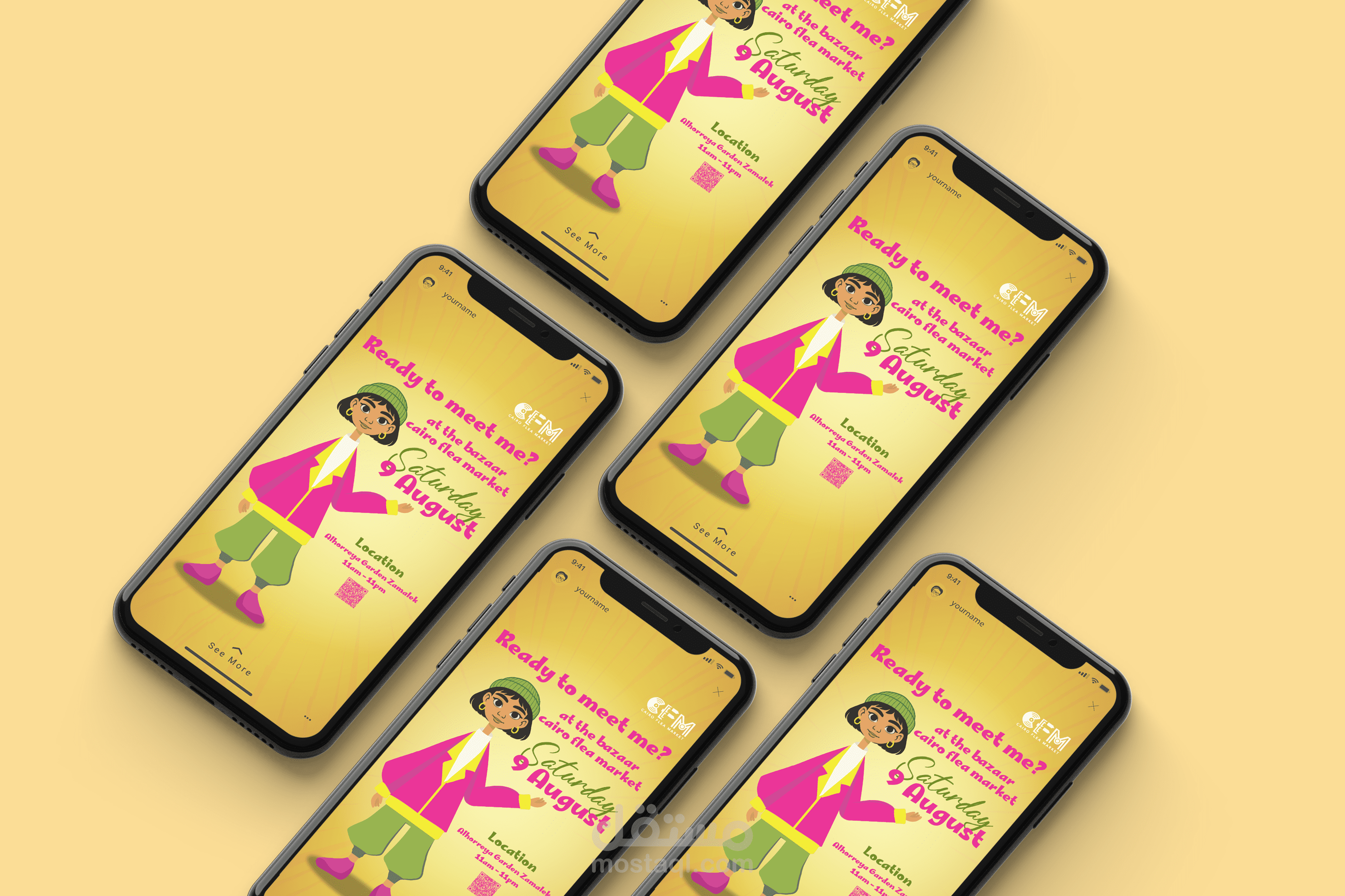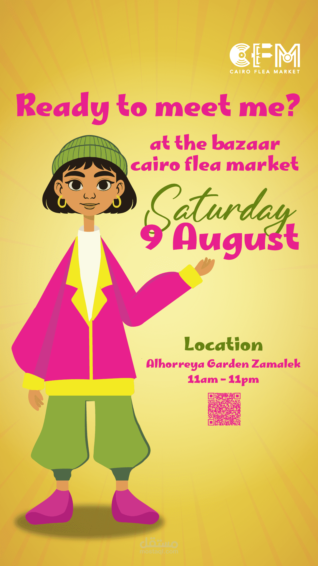 المشروع هو ريبراند كامل لبازار "Cairo Flea Market"، وهو بازار مصري يجمع بين مجموعة متنوعة من الأقسام تشمل الملابس، الأنتيكات، الحرف اليدوية، وورش الفنون. الهدف من المشروع كان تجديد الهوية البصرية للبازار بشكل يعكس روح المكان الشعبية المعاصرة، ويعبّر عن التنوع والتفاعل بين الماضي والحاضر.