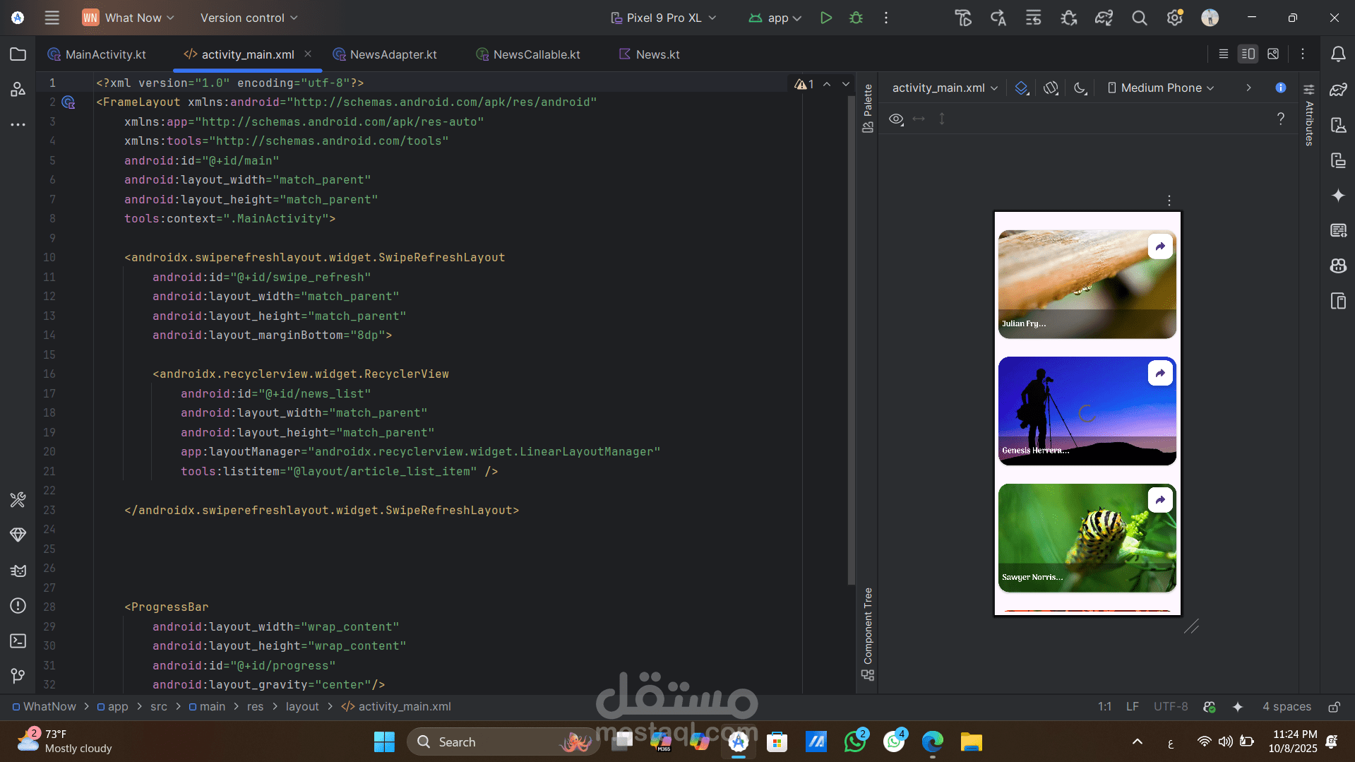 برنامج لعرض الاخبار اليويمية بأستخدام ال API والكوتلن والXML.