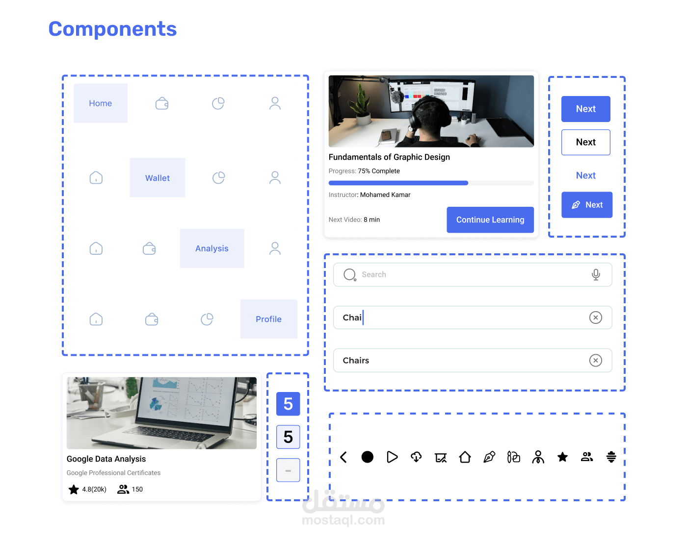 قمت بتصميم تجربة المستخدم (UX) والواجهة (UI) لمنصة SkillUp، وهي منصة تعليم إلكتروني تهدف إلى تسهيل عملية حجز الكورسات أونلاين بطريقة بسيطة وسلسة، مشابهة لفكرة Coursera.