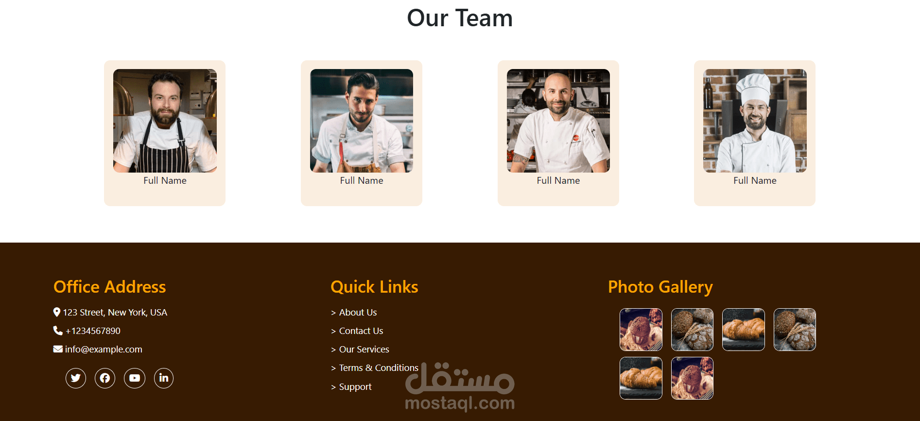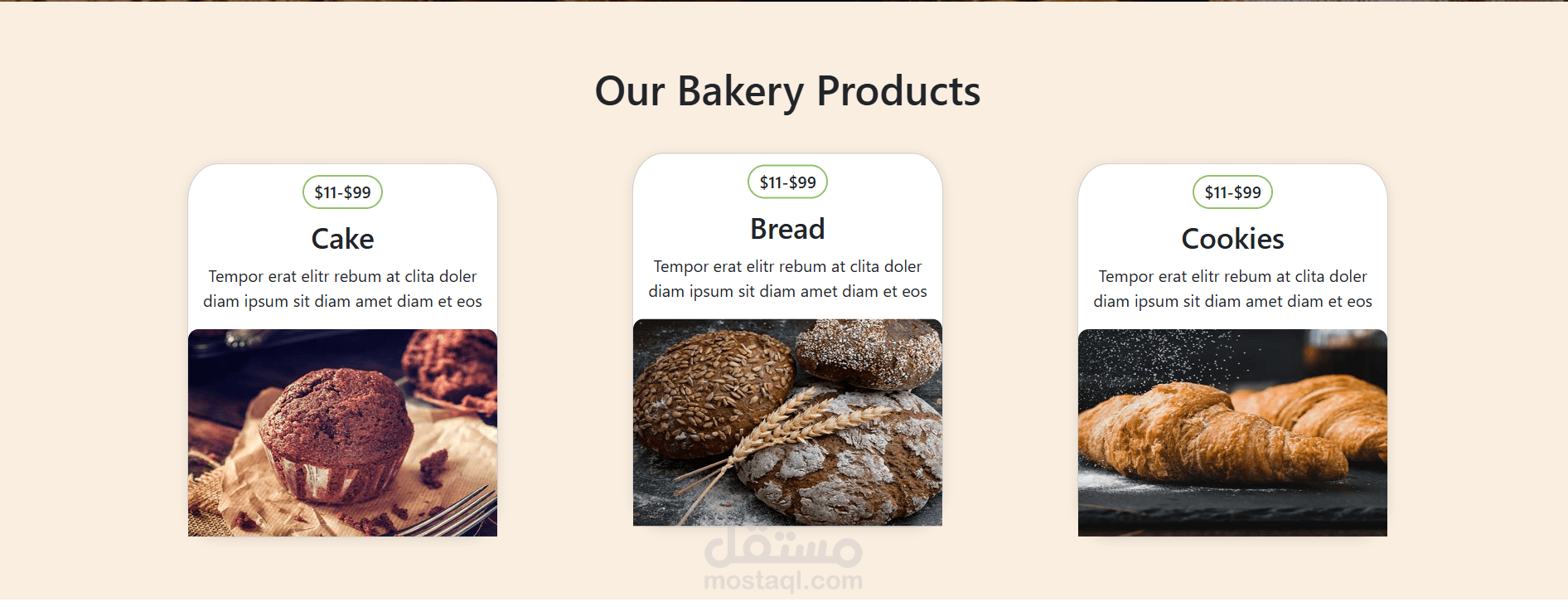 A clean and responsive bakery website built with HTML and CSS. It includes product sections, team profiles, and a modern footer with hover effects and elegant colors for a warm, inviting look.