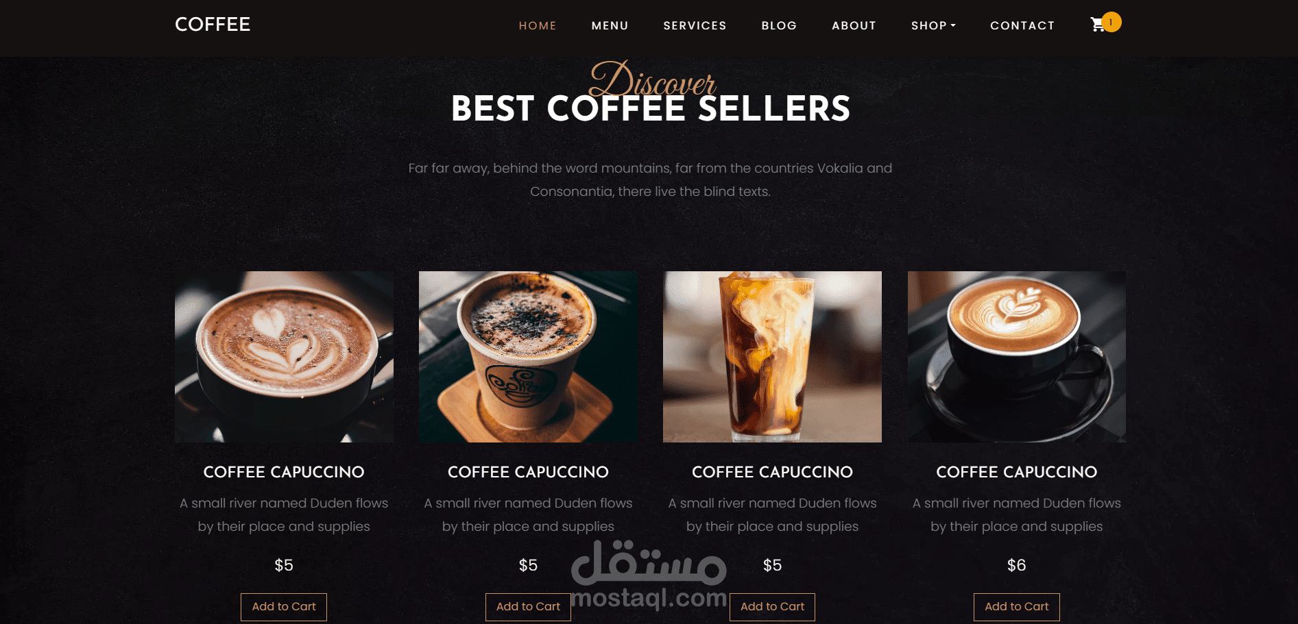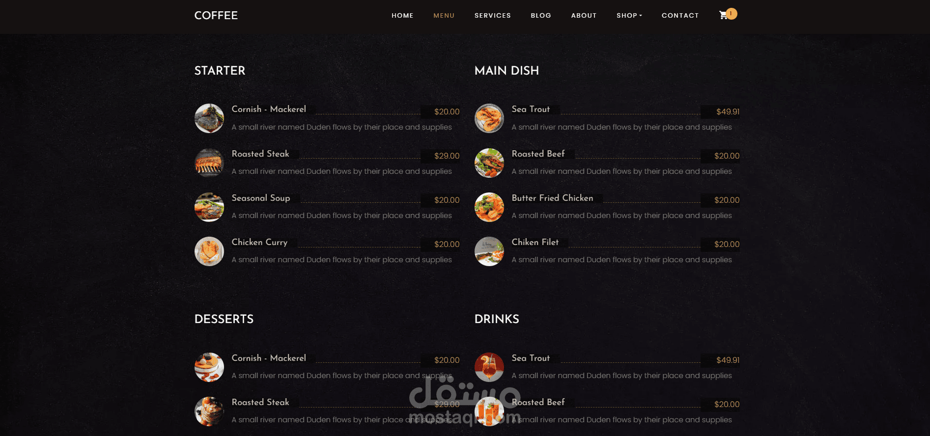 نفذت موقع إلكتروني متكامل لمطعم وكافيه بيقدم القهوة والأكلات المميزة، الهدف منه إن المستخدم يعيش تجربة تصفح وشراء سهلة ومريحة من أول زيارة.