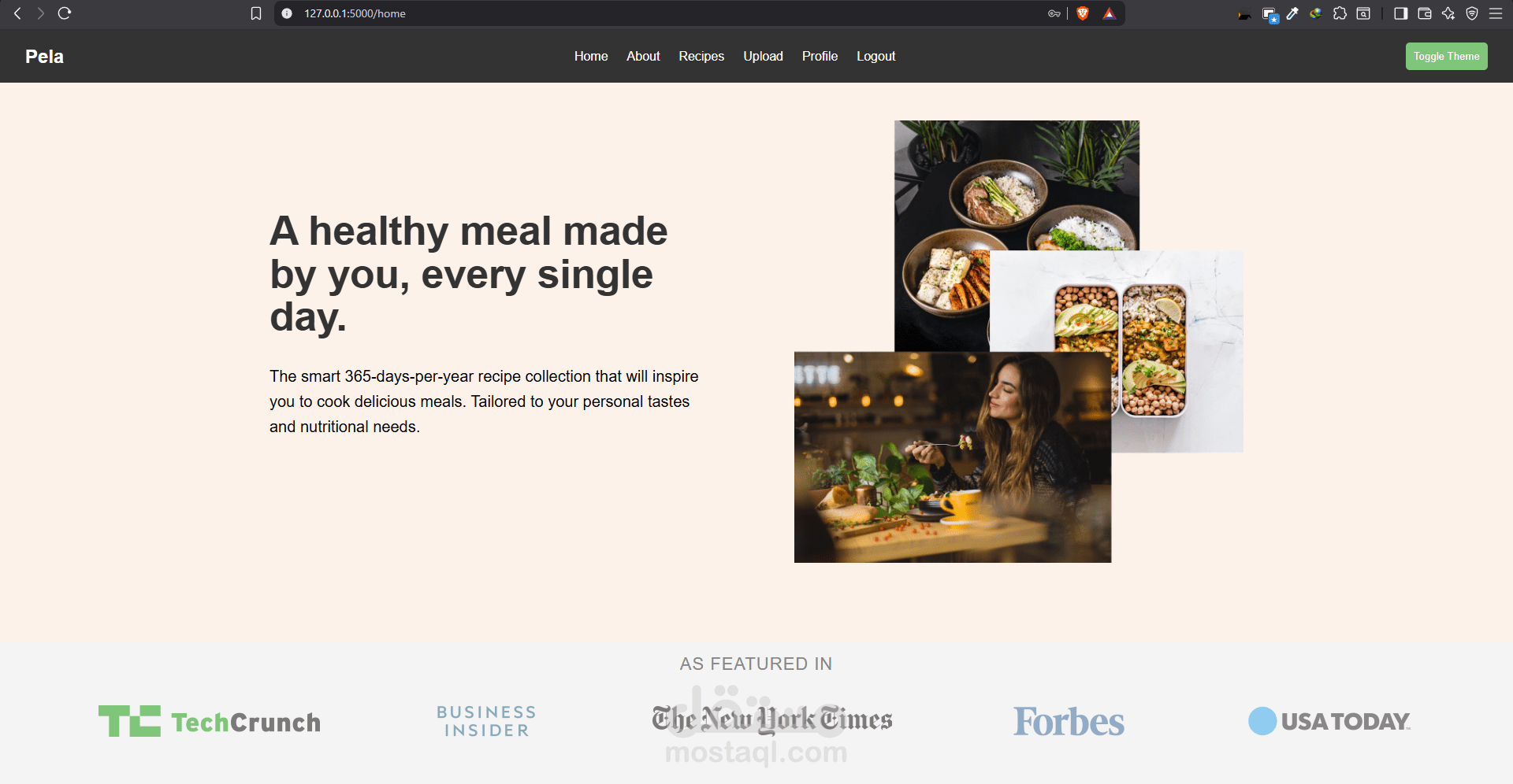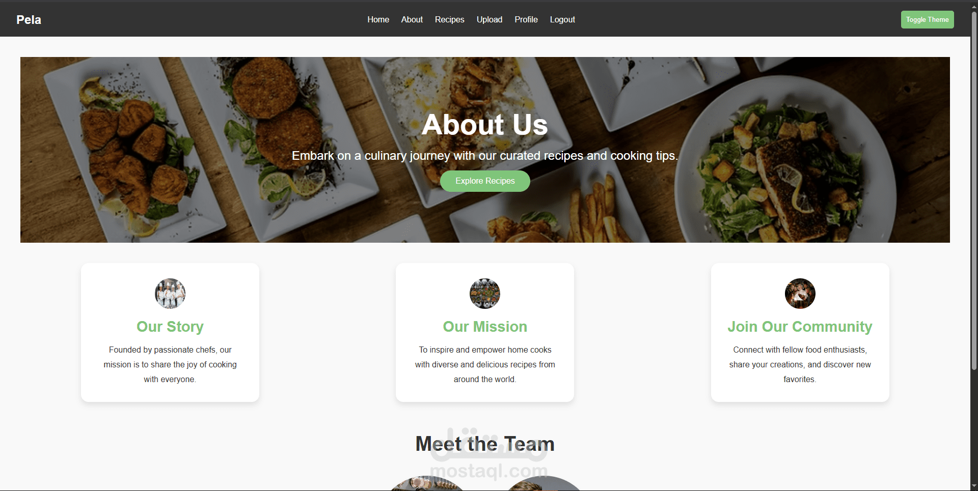 Frontend: واجهة مستخدم تفاعلية مبنية بـ HTML, CSS, وJavaScript لعرض الوصفات بطريقة جذابة.