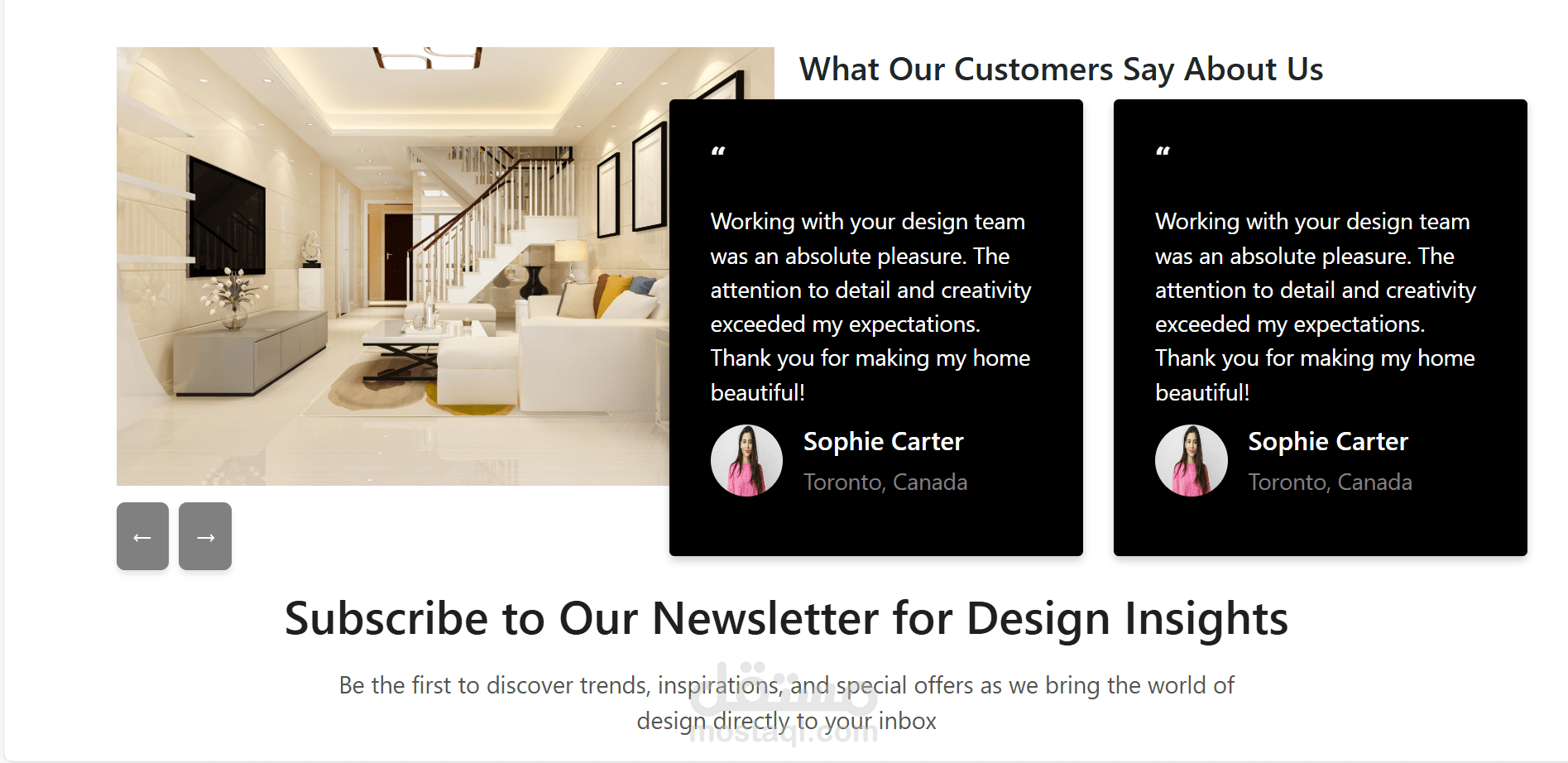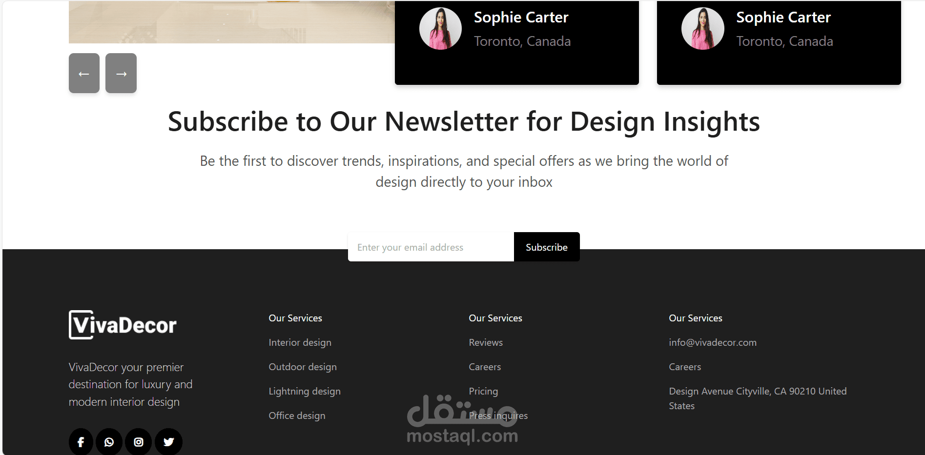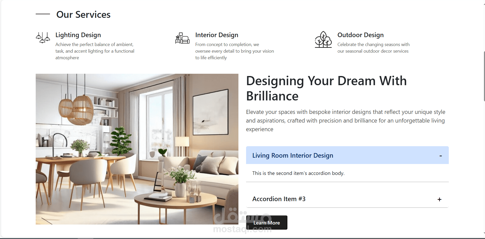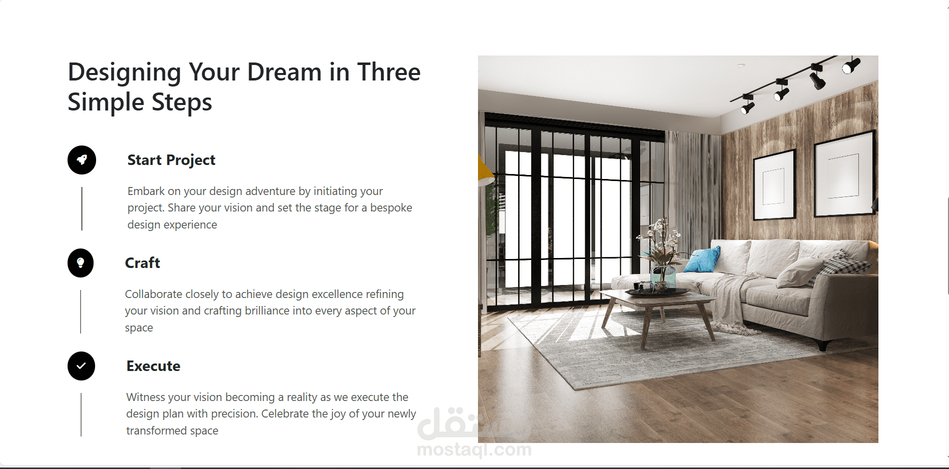 صفحة هبوط (Landing Page) احترافية ومليئة بالتفاصيل الراقية لمجال التصميم الداخلي (Interior Design)،