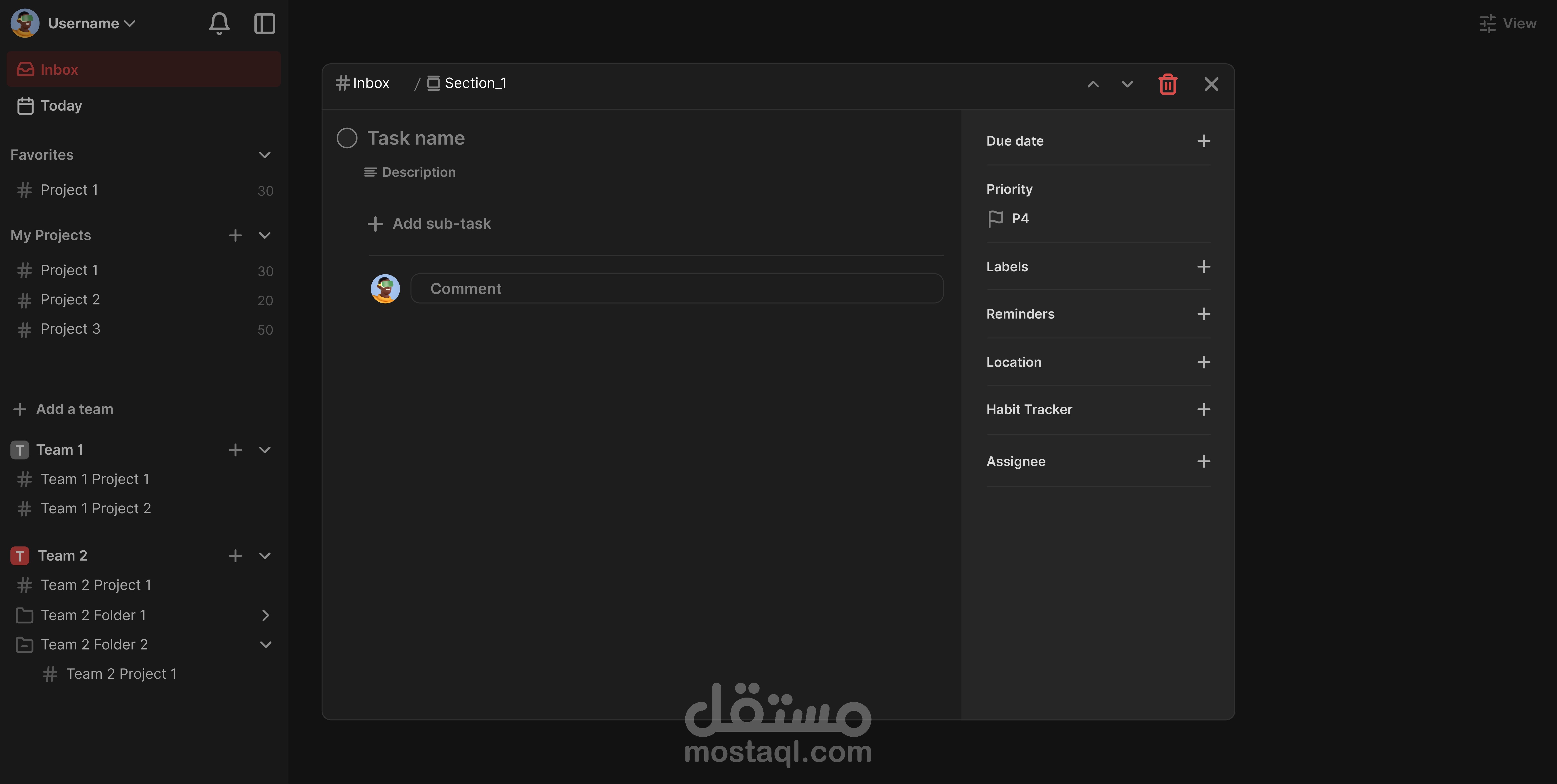 تصميم واجهة لتطبيق مهام مشابه لتطبيق Todoist على Figma