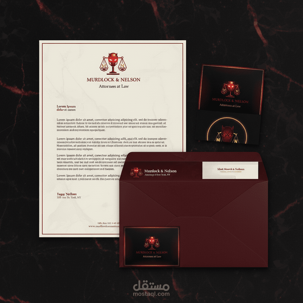 ️ Daredevil Law Firm – الهوية البصرية الكاملة لمكتب محاماة ماثيو موردوك & فوجي نيلسون