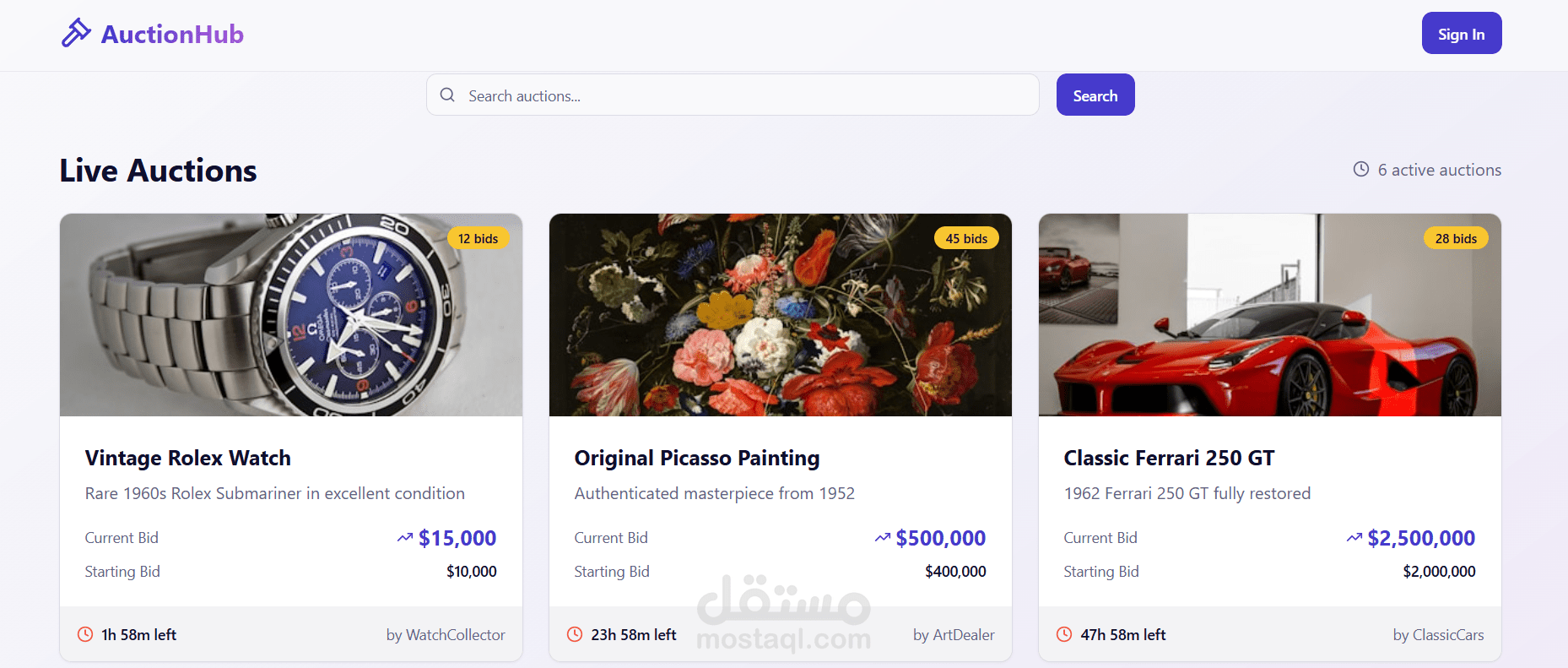 a website where sellers could upload their products and bedders could add their prices and the highest price wins the product (the auction )