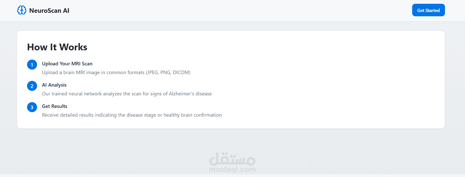 the patient should upload their brain MRI to the system and the model will return the result whether it's clear MRI or has the disease from stage 1 to 3