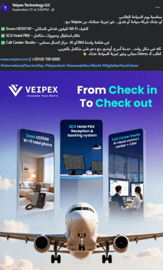ركّزت على إبراز خبرات الشركة في مجالات VoIP، ERP، والأمن السيبراني بمحتوى متخصص زوّد التفاعل والثقة.