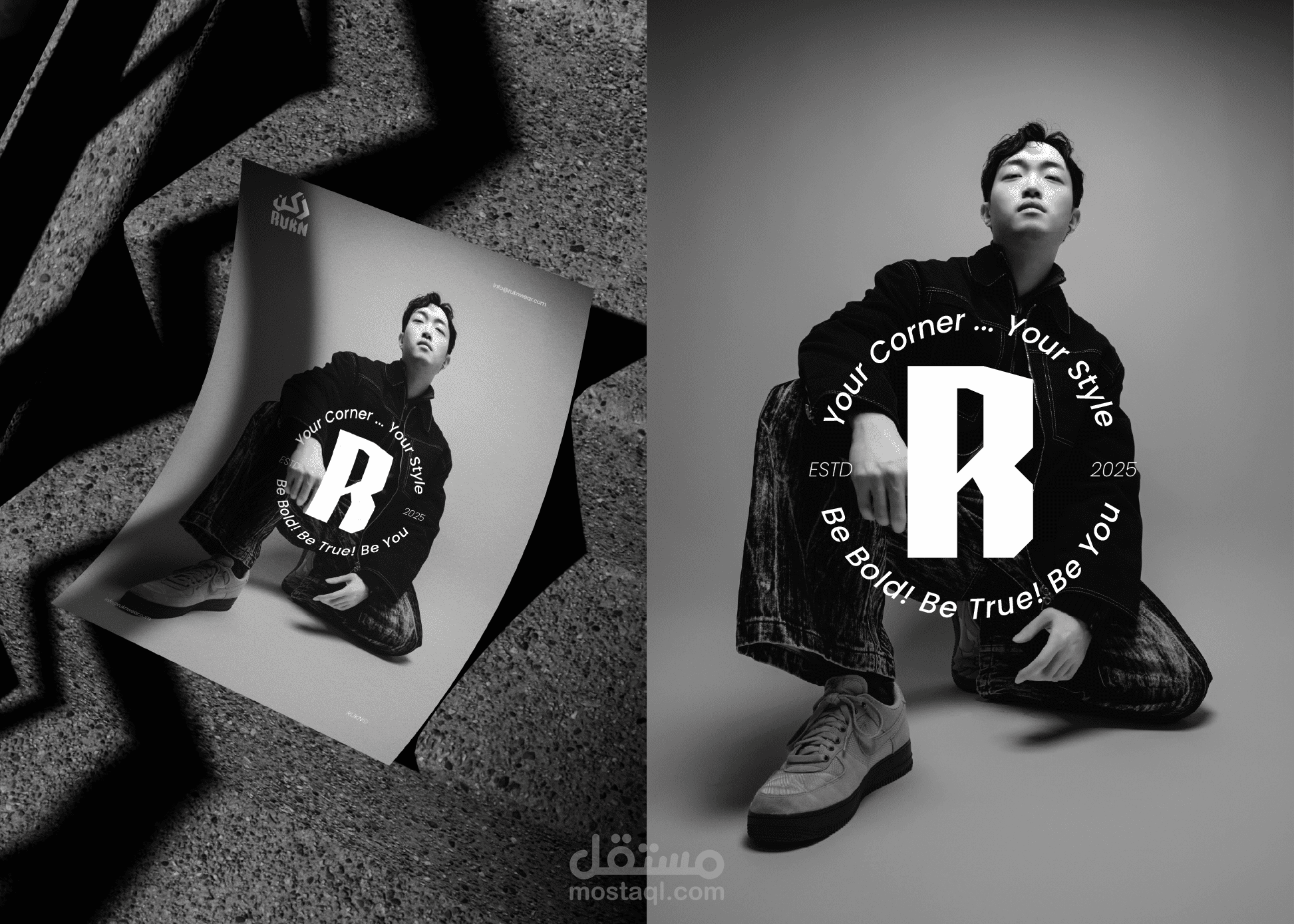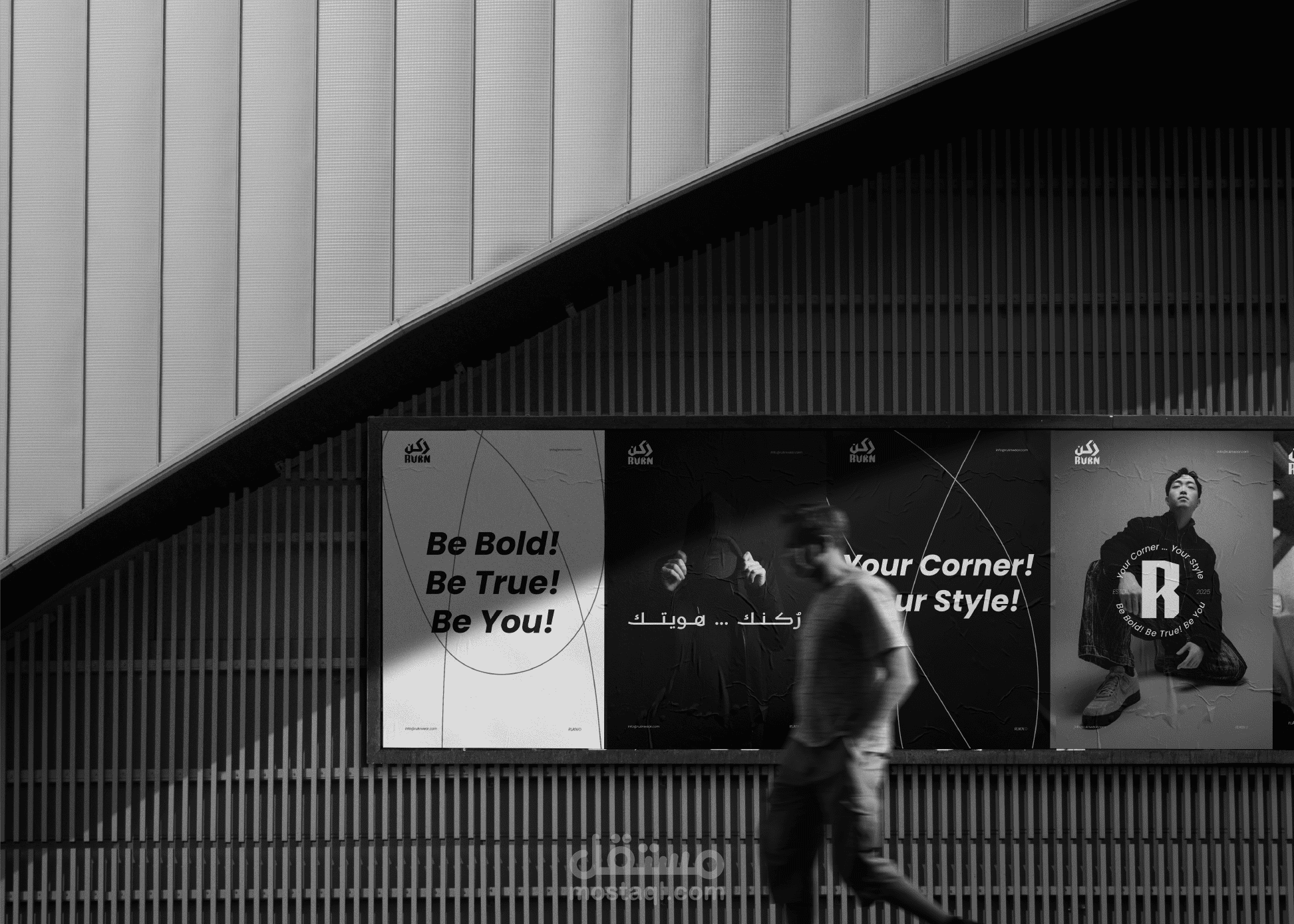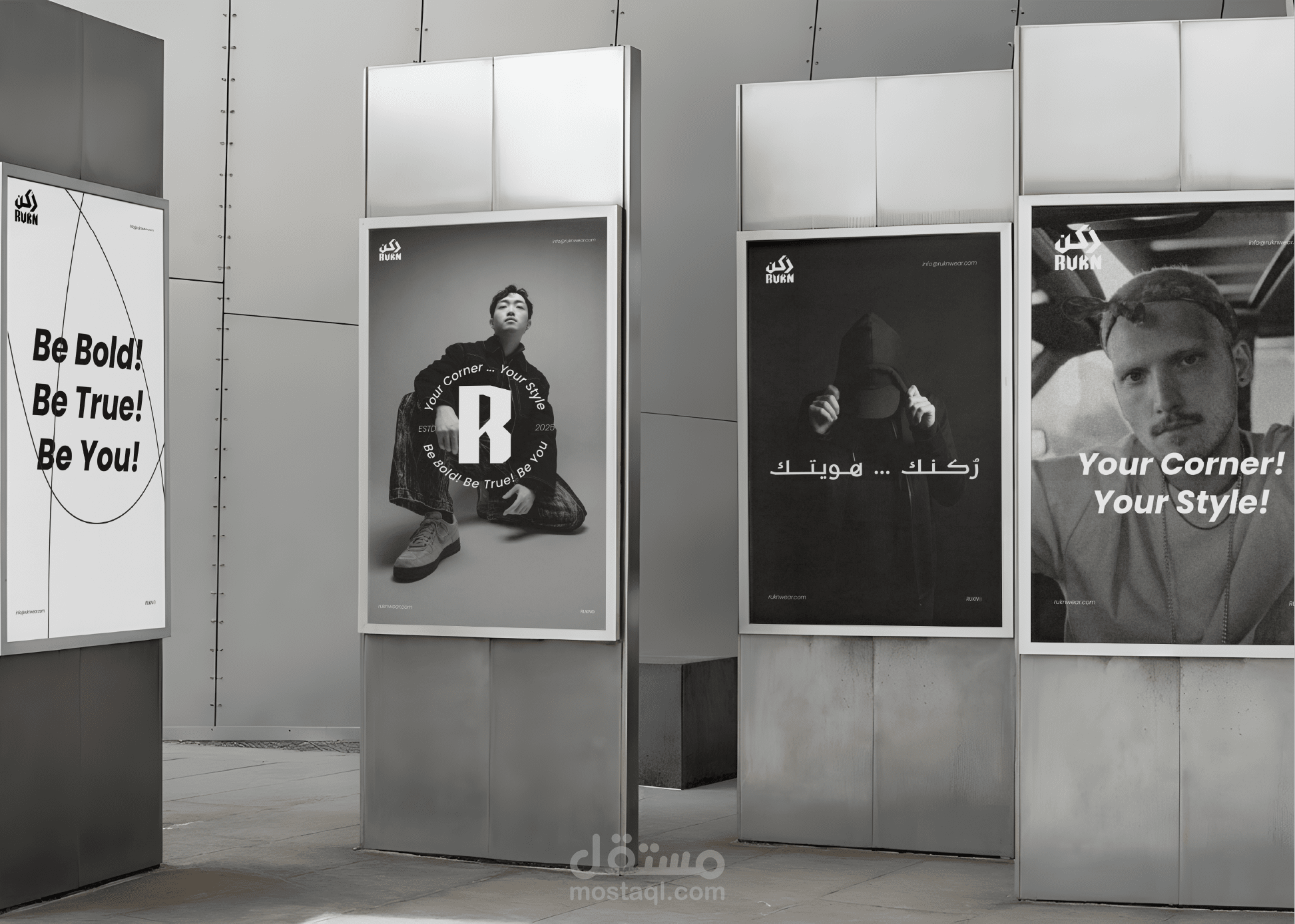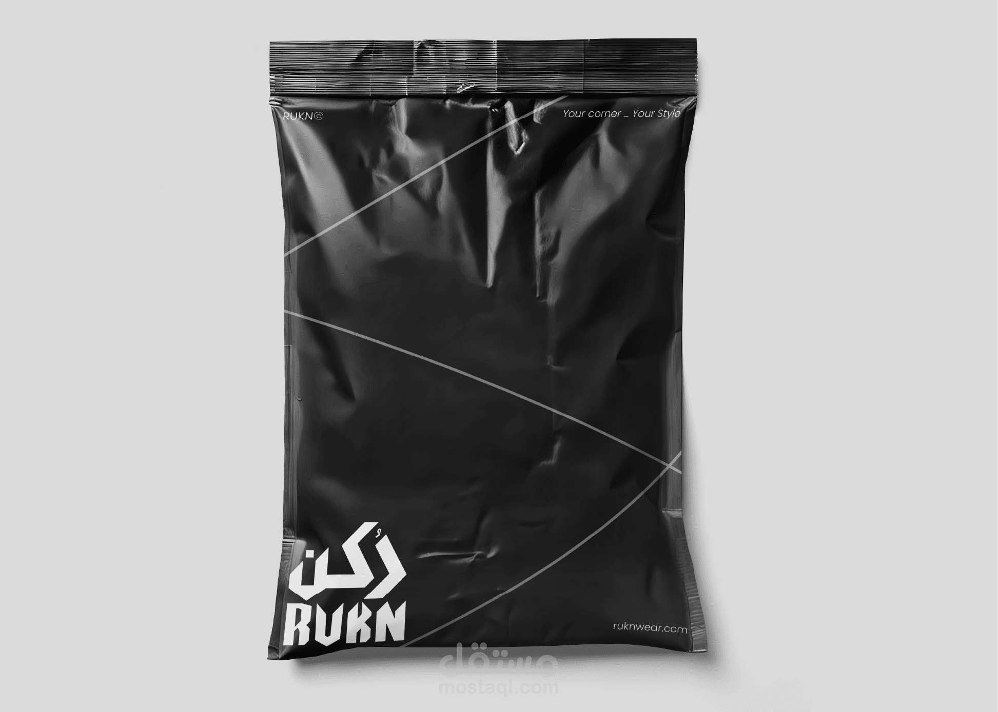 متحمس لمشاركة مشروع الهوية البصرية الكامل لعلامة "ركن" علامة ستريت وير جريئة تعبّر عن الثقة، الفردية، والتعبير عن الذات بلا خوف.