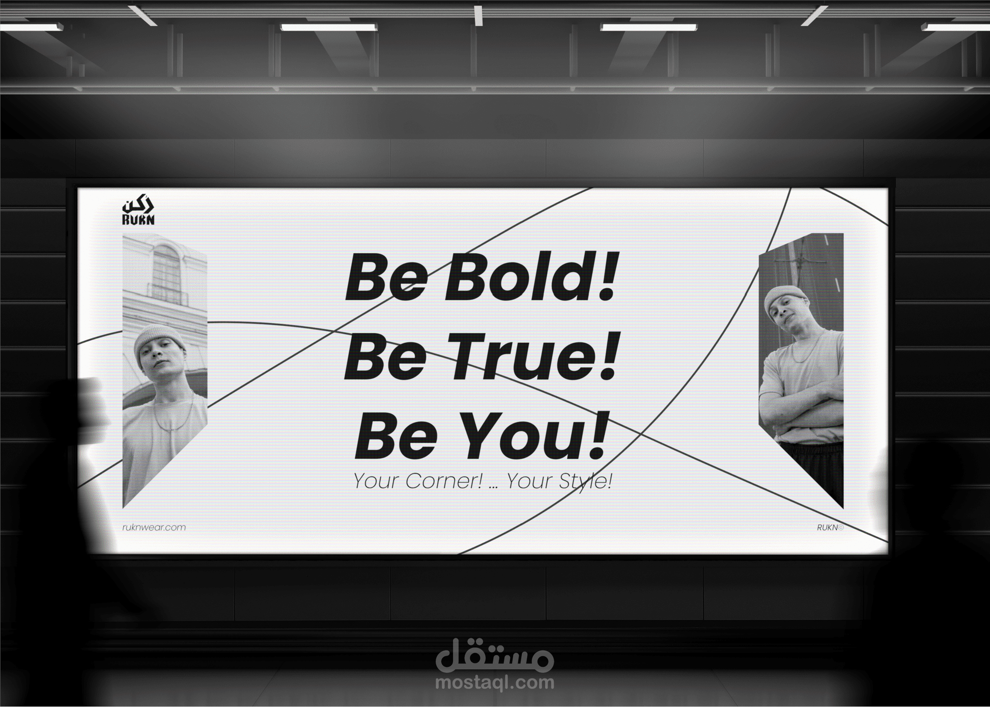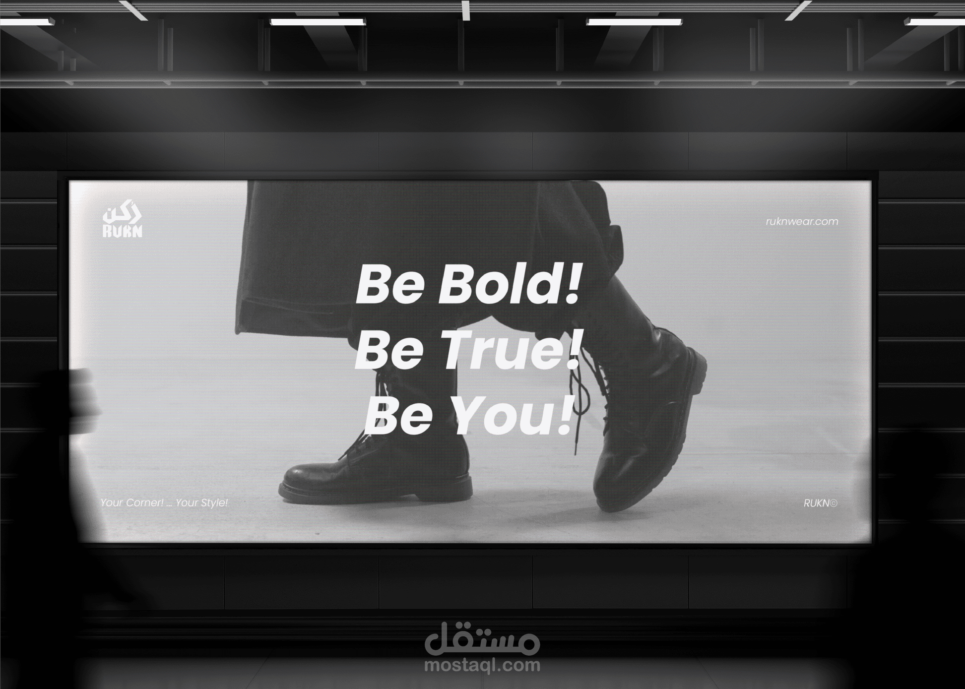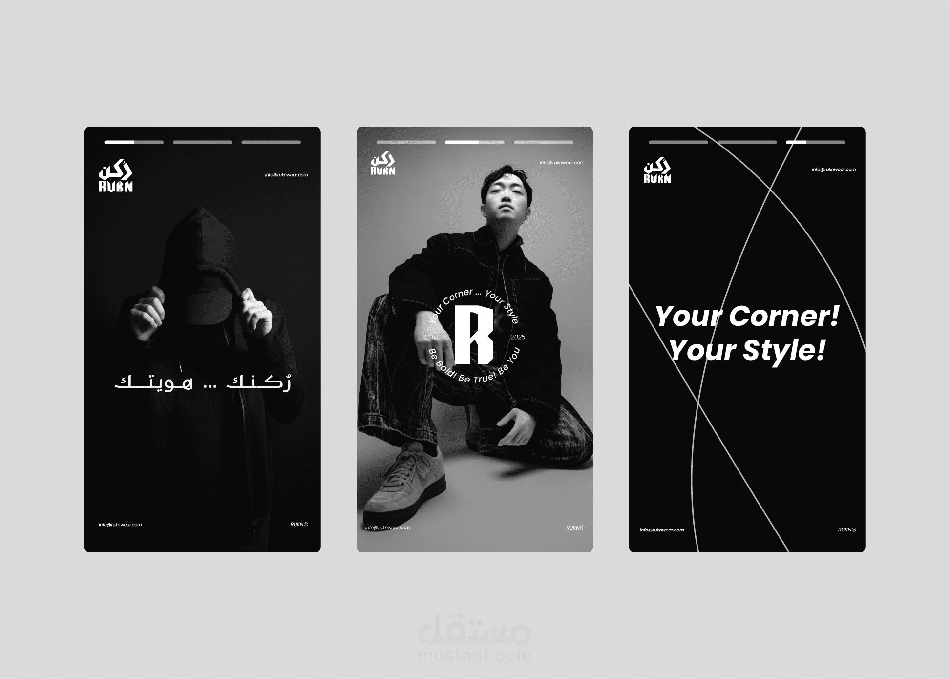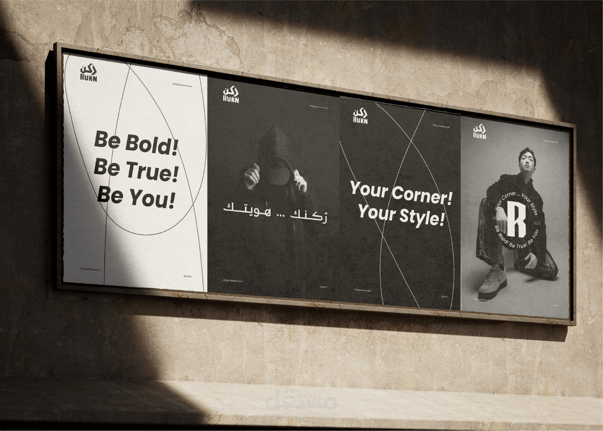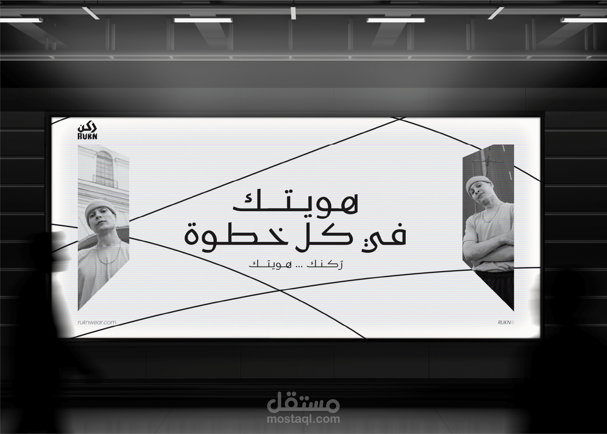 متحمس لمشاركة مشروع الهوية البصرية الكامل لعلامة "ركن" علامة ستريت وير جريئة تعبّر عن الثقة، الفردية، والتعبير عن الذات بلا خوف.