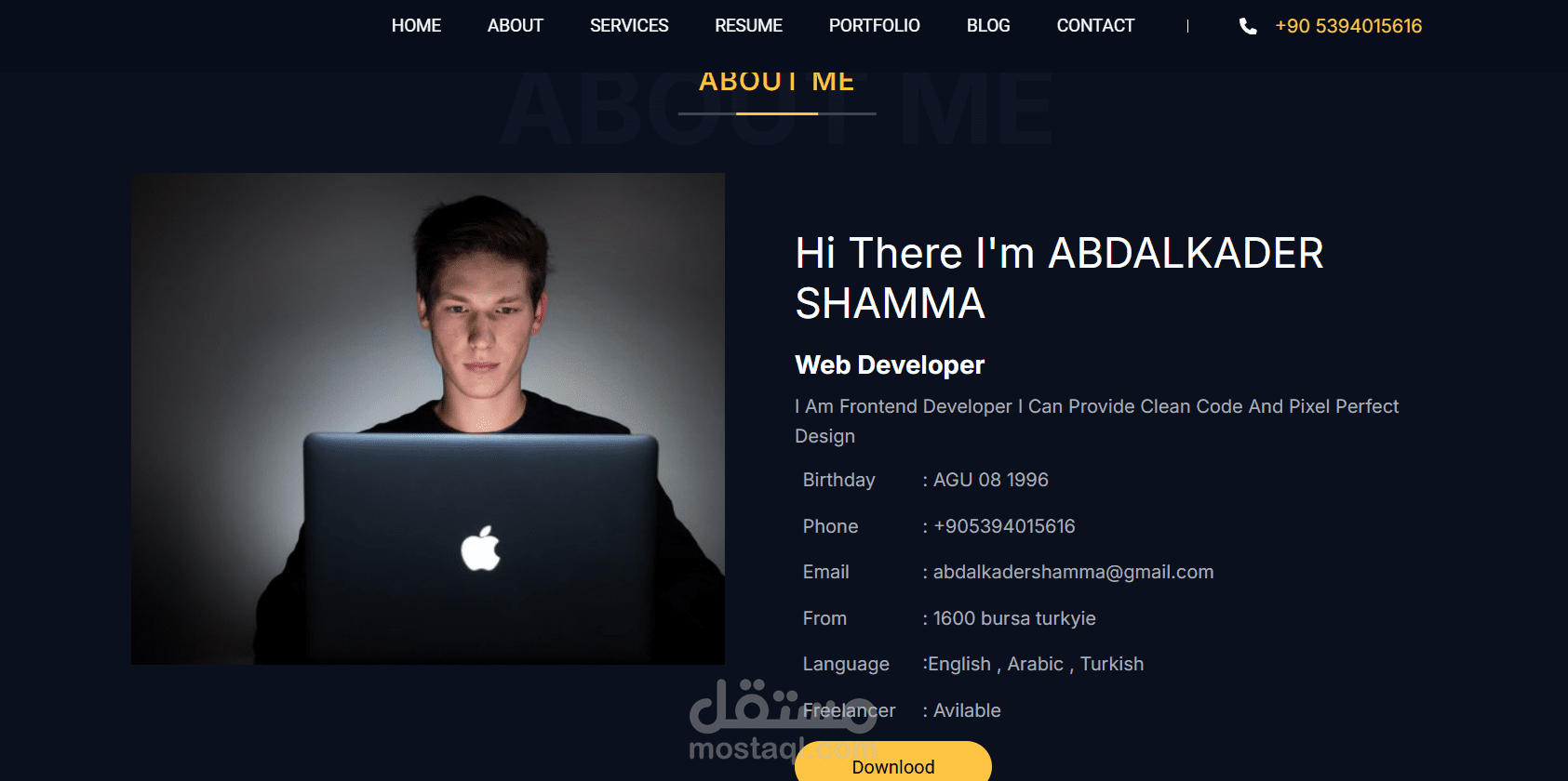 هنا صفحة portfolio الخاصة بي هي من اول مشاريعي الذي صممت مثلها لعدد من المشتريين