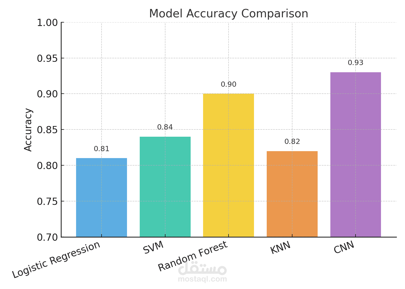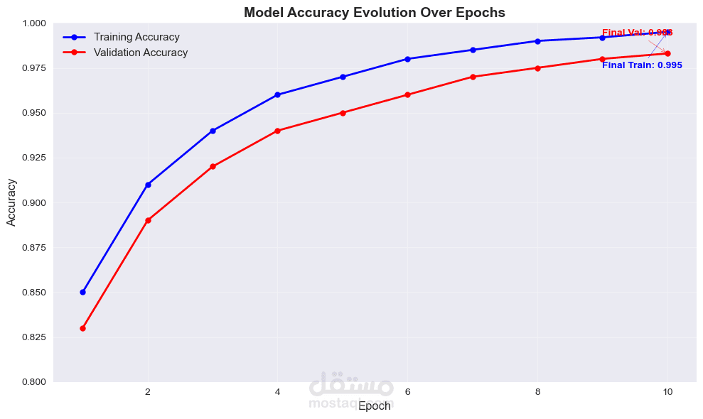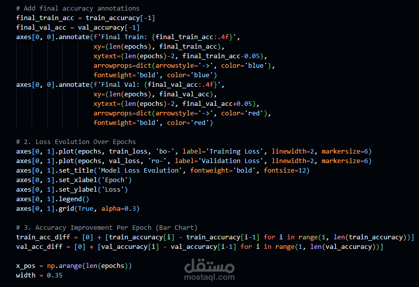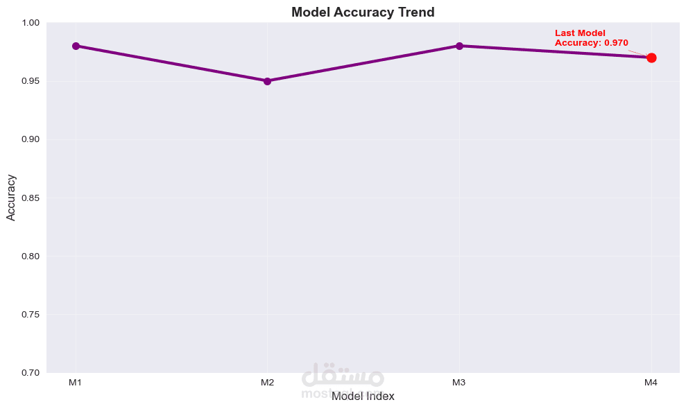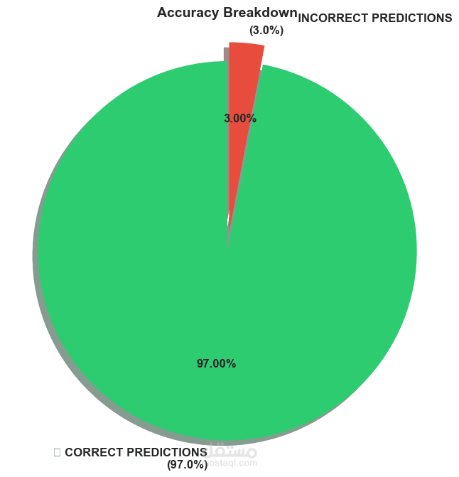 تقييم الأداء: قياس دقة النموذج باستخدام مقاييس مثل Accuracy وPrecision وRecall لضمان أداء موثوق.
